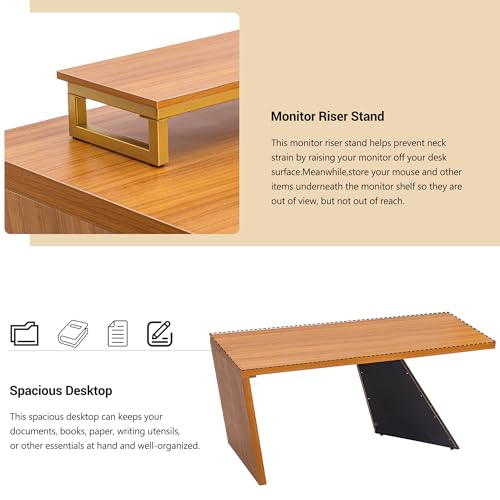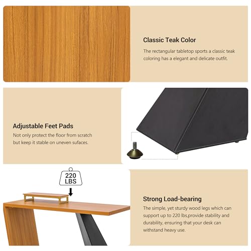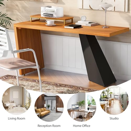 Executive Desk, 63" Rustic Industrial Wooden Computer Desk, Study Desk with Monitor Stand, Creative Workstation, Rectangular Writing Desk for Home Office, Living Room, Teak