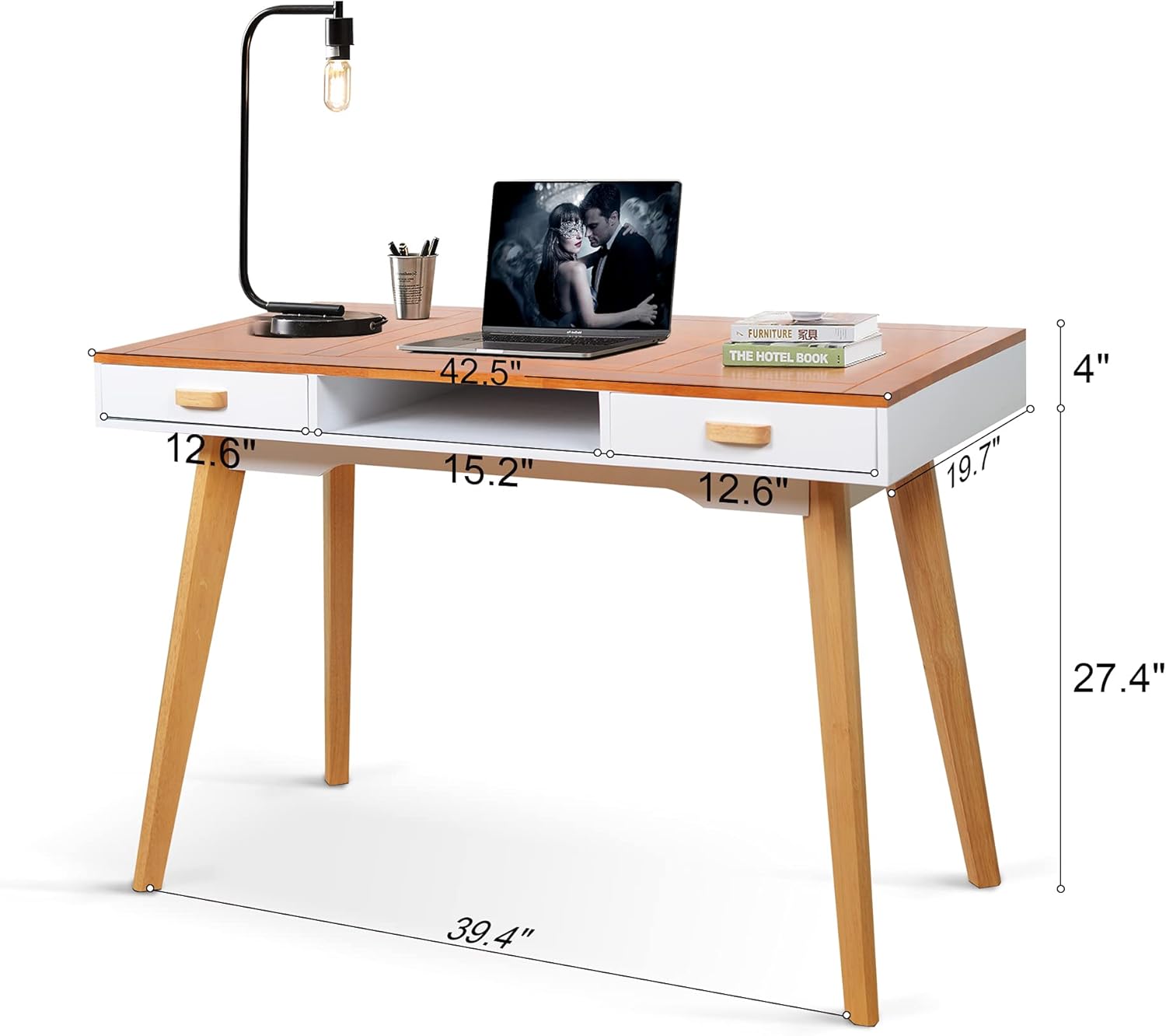 42" Home Office Desk with File Drawer, Modern Computer Table with Laptop Storage Space, Student Girls Desks Teens Writing Table