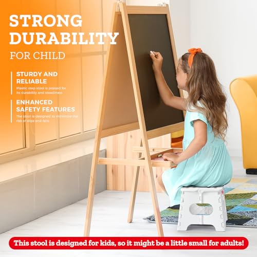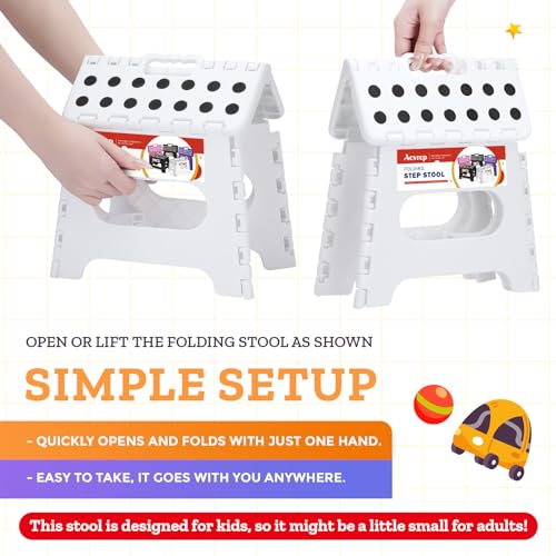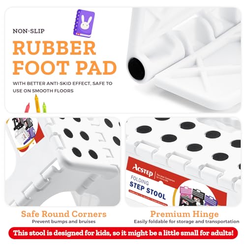 ACSTEP Folding Step Stool Foldable Stool 7.5 Inch Height Kids Step Stool, 300 lb Capacity Plastic Collapsible Stool, Stepping Stool with Handle White Small Step Stool, Foot Stool Suitable for Kitchen