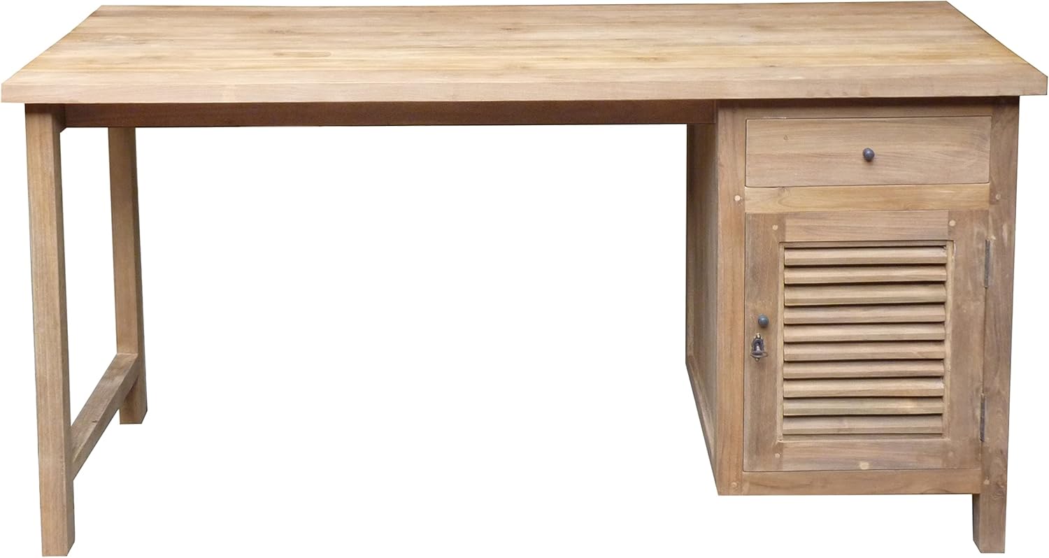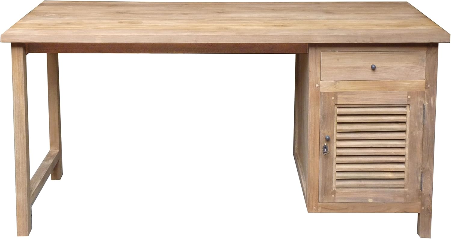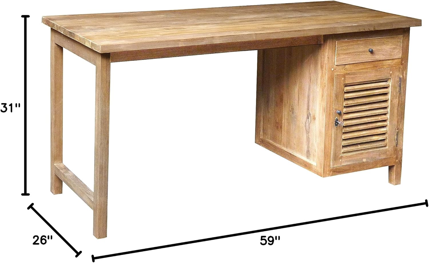 Recycled Teak Wood Louvre Writing Desk with 1 Door & Drawer