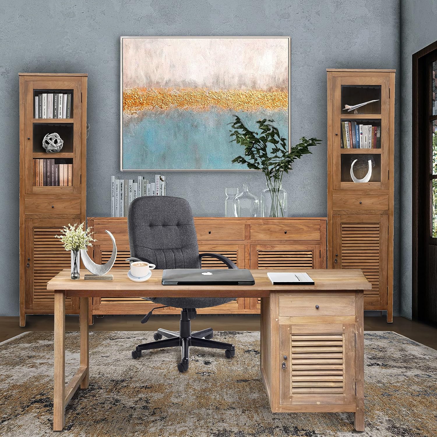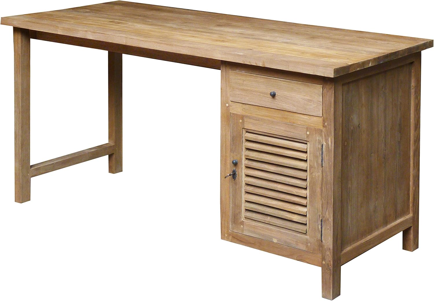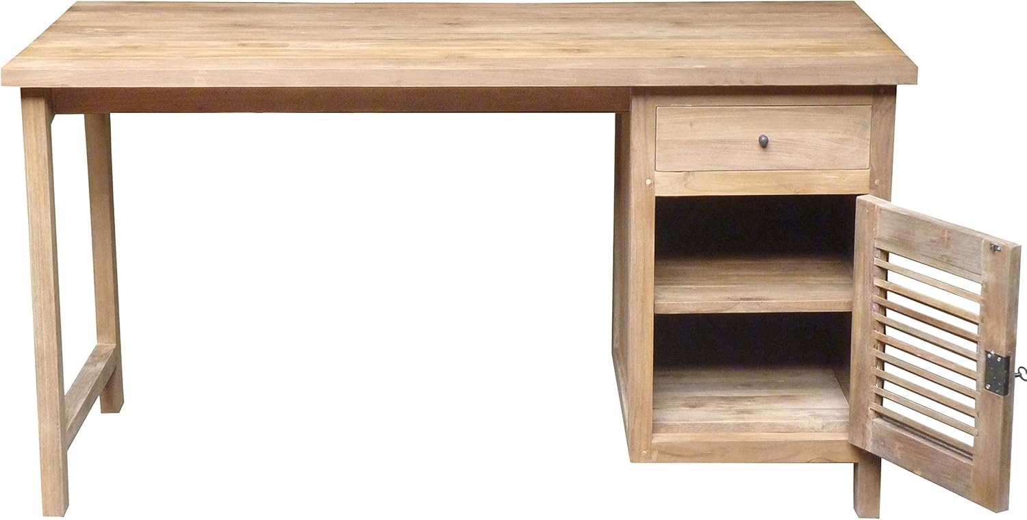 Recycled Teak Wood Louvre Writing Desk with 1 Door & Drawer