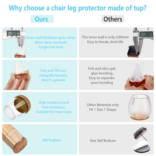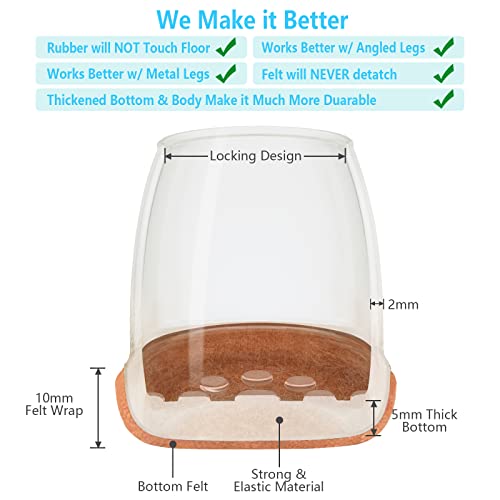 16 Pack Chair Leg Floor Protectors for Hardwood Floors, Rubber Furniture Sliders, 360°Felt Pad Bottom Wrapped Thickening Silicone Furniture Legs Caps Covers (L(L:1.3-1.7",W:0.9-1.2"), Rectangular)