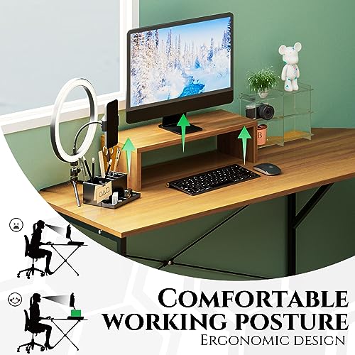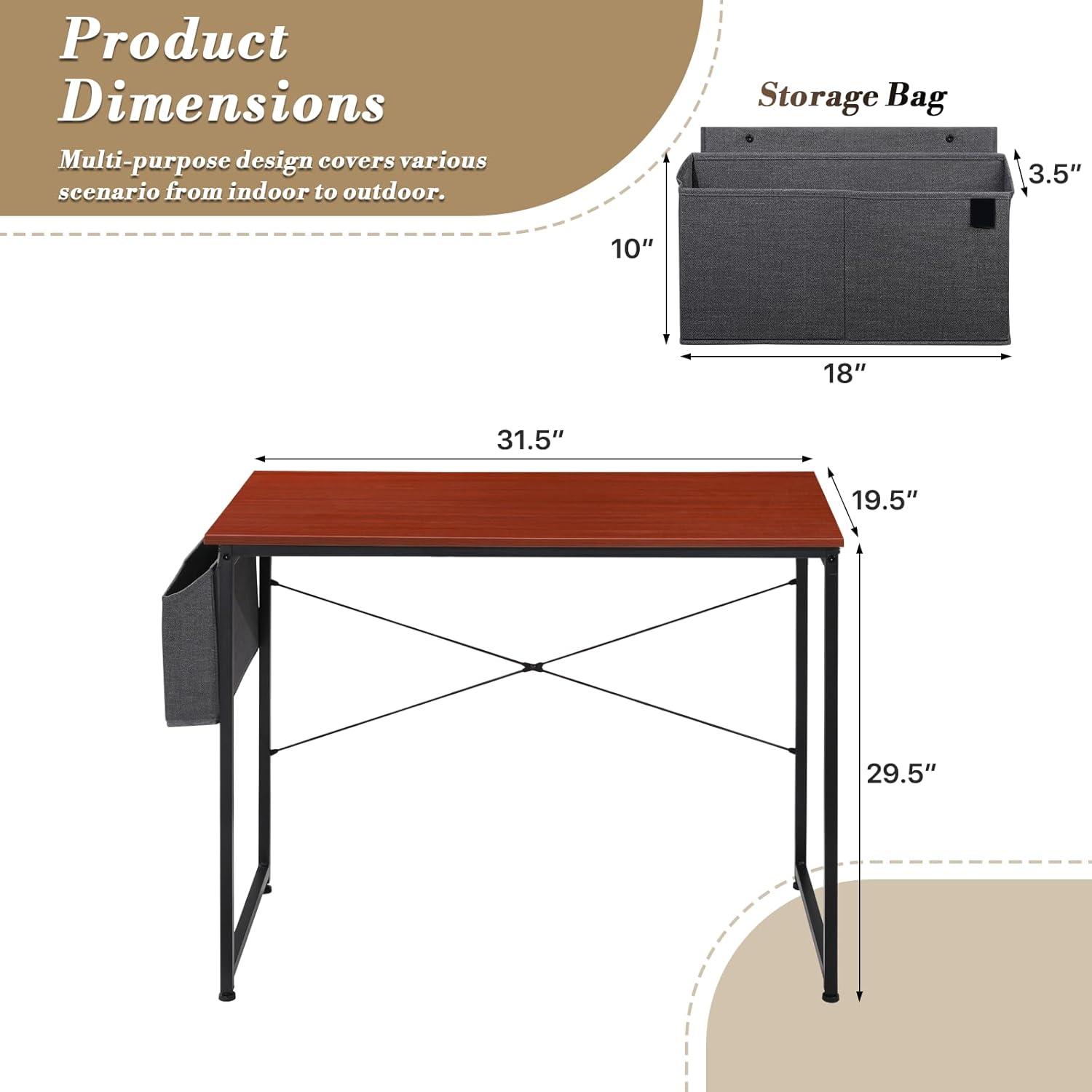 SogesGame 31.5 inches Small Desk Computer Desk for Small Space, Small Folding Table Small Writing Desk Compact Desk Foldable Desk, No Install Needed, Teak Black