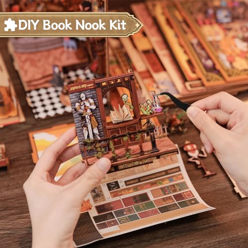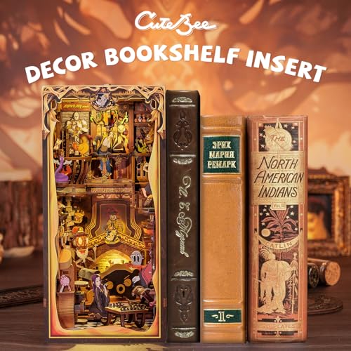 CUTEBEE Book Nook Kit - DIY Miniature House Kit for Adults, Teens and Beginners, Dollhouse Booknook Tiny House Library Model Build Bookshelf Decor, Gifts for Family, Friends (Bookshop Memories)