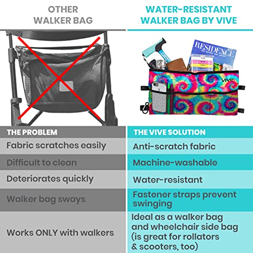 Vive Walker Bag - Accessories Wheelchair Basket Pouch (Water Resistant) - Seniors Caddy Accessory Attachment for Folding, Rolling Walkers - Carry Storage Carrier Tote - Lightweight, Universal Size