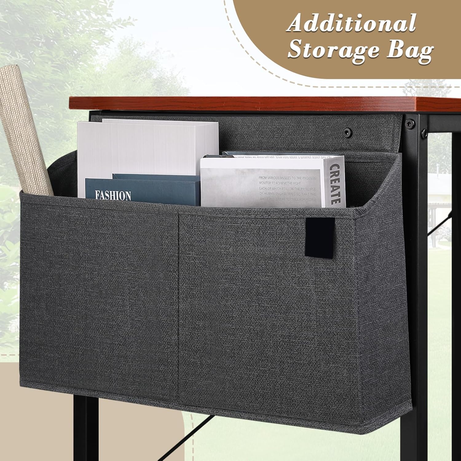 Athena Collection 32" Gaming Computer Desk, Home Office Desk Work Study Desk with Storage Bag for Small Spaces, Modern Simple Wood Desk Student Writing Craft Desk PC Desk Bedroom Table, Teak