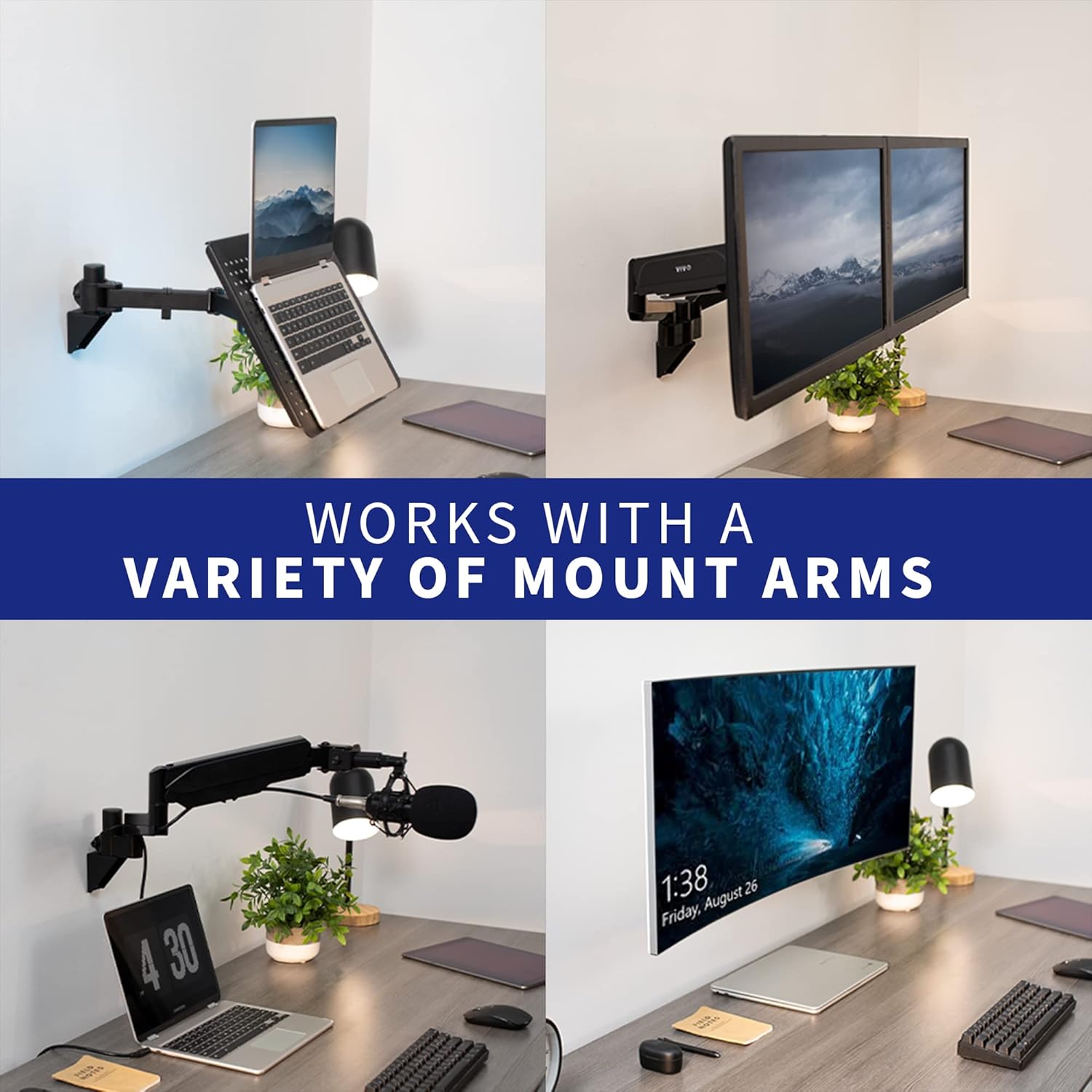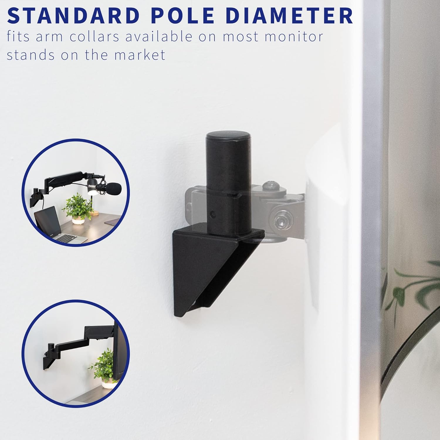 VIVO Wall Mount Conversion Pole Bracket, for Single or Dual Monitor Mount Arms, Standard 1-3/8 inch Diameter, Universal Compatibility, Weight Capacity 44 lbs, Black, MOUNT-WCB01