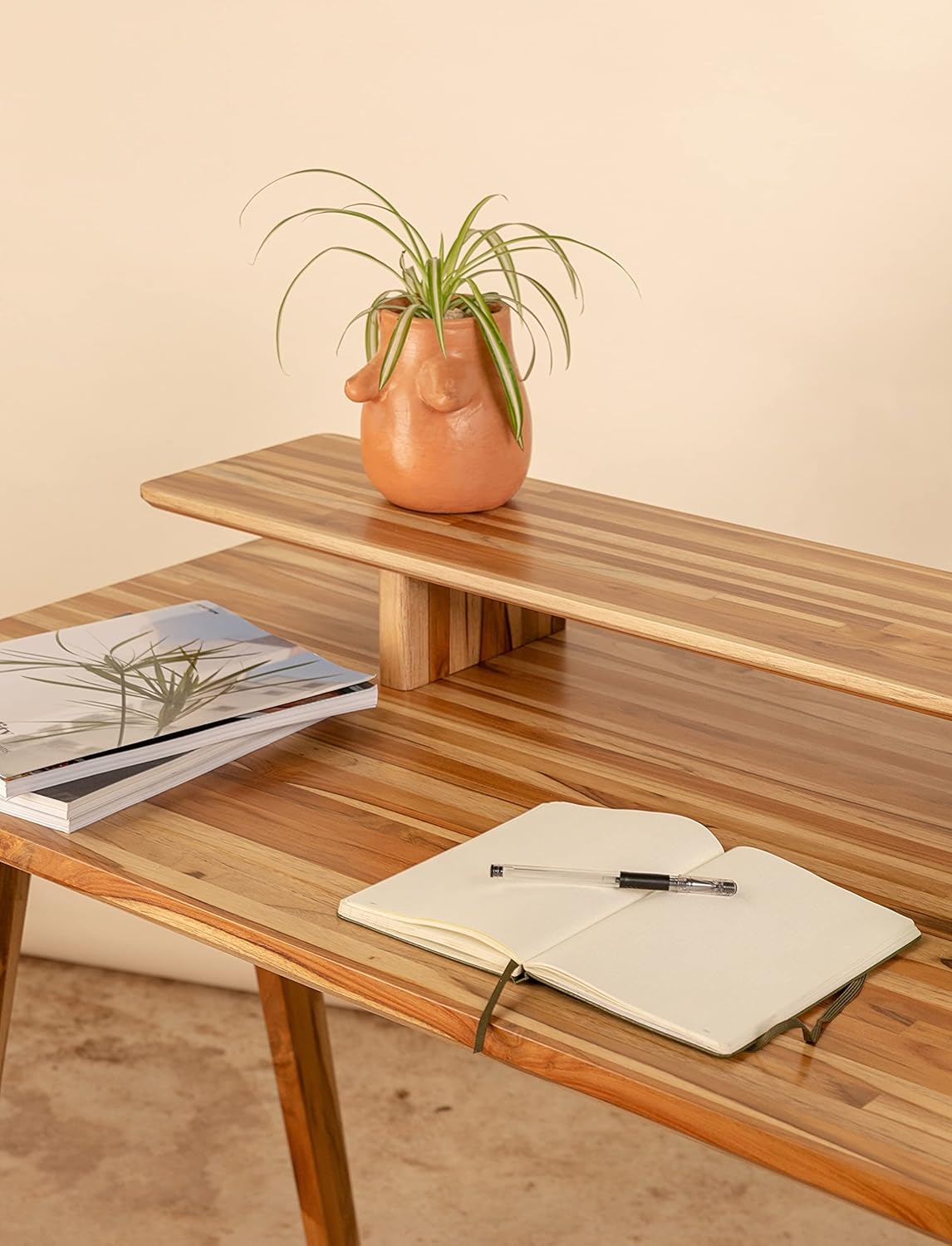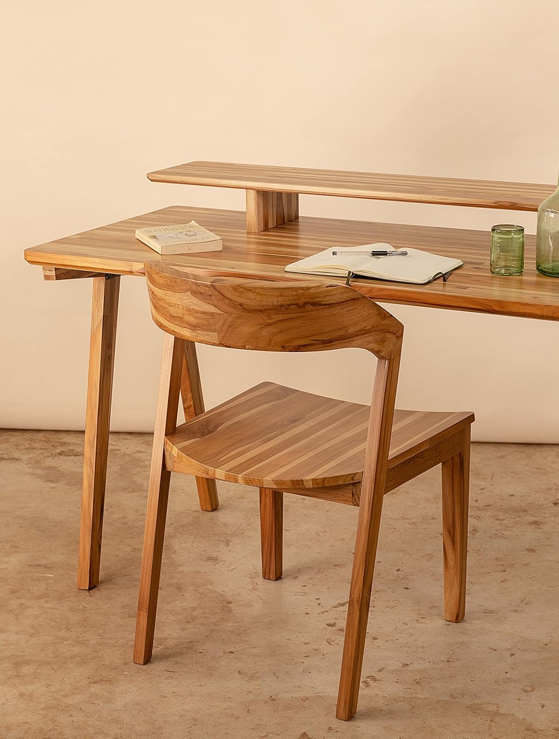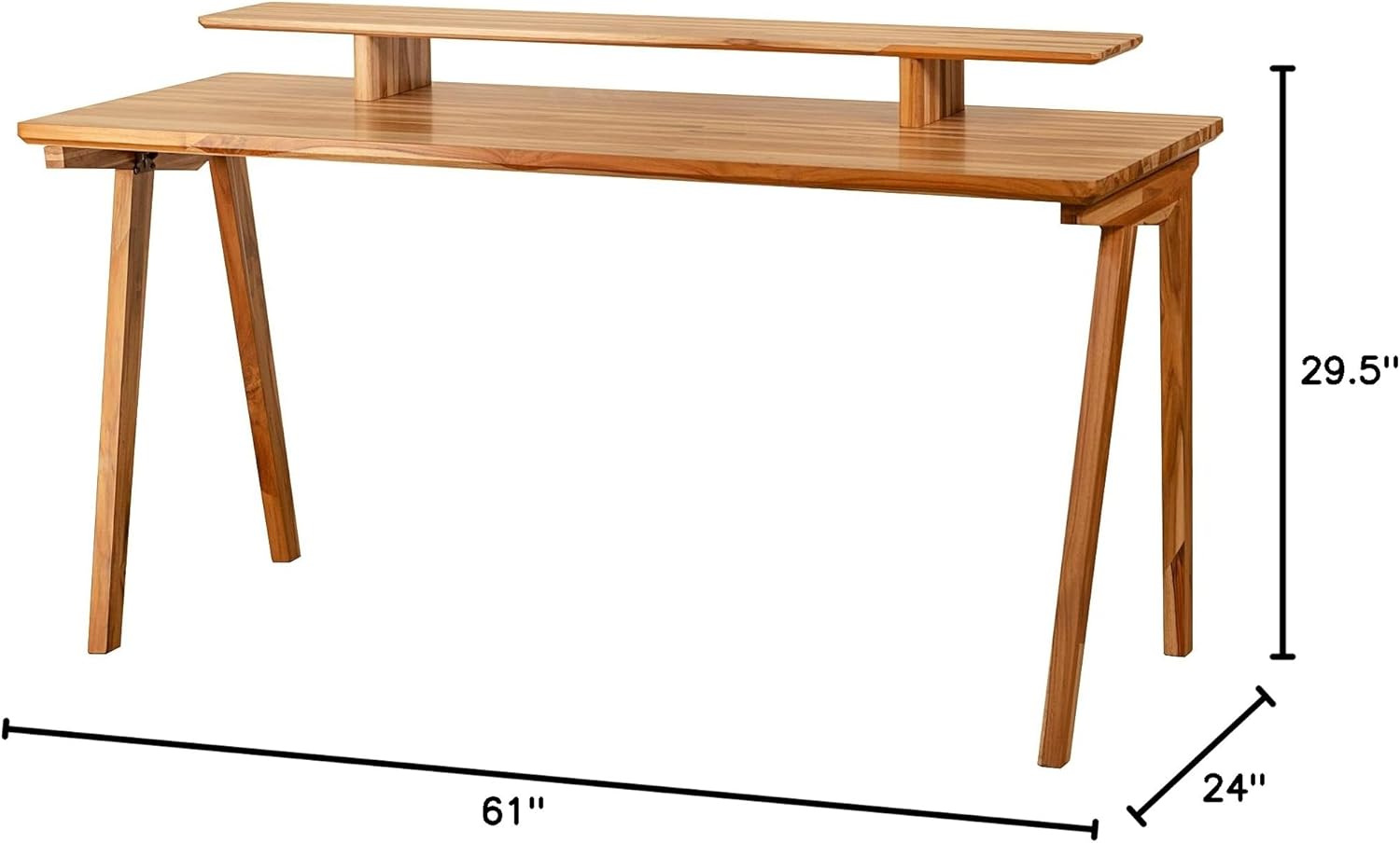 Ebb & Flow Large 61 Inch Wood Work Desk with Shelf for TV Computer Screen & Laptop – Handcrafted Natural Solid Wood Teak Desk Organizer Computer Table for Office Living Room