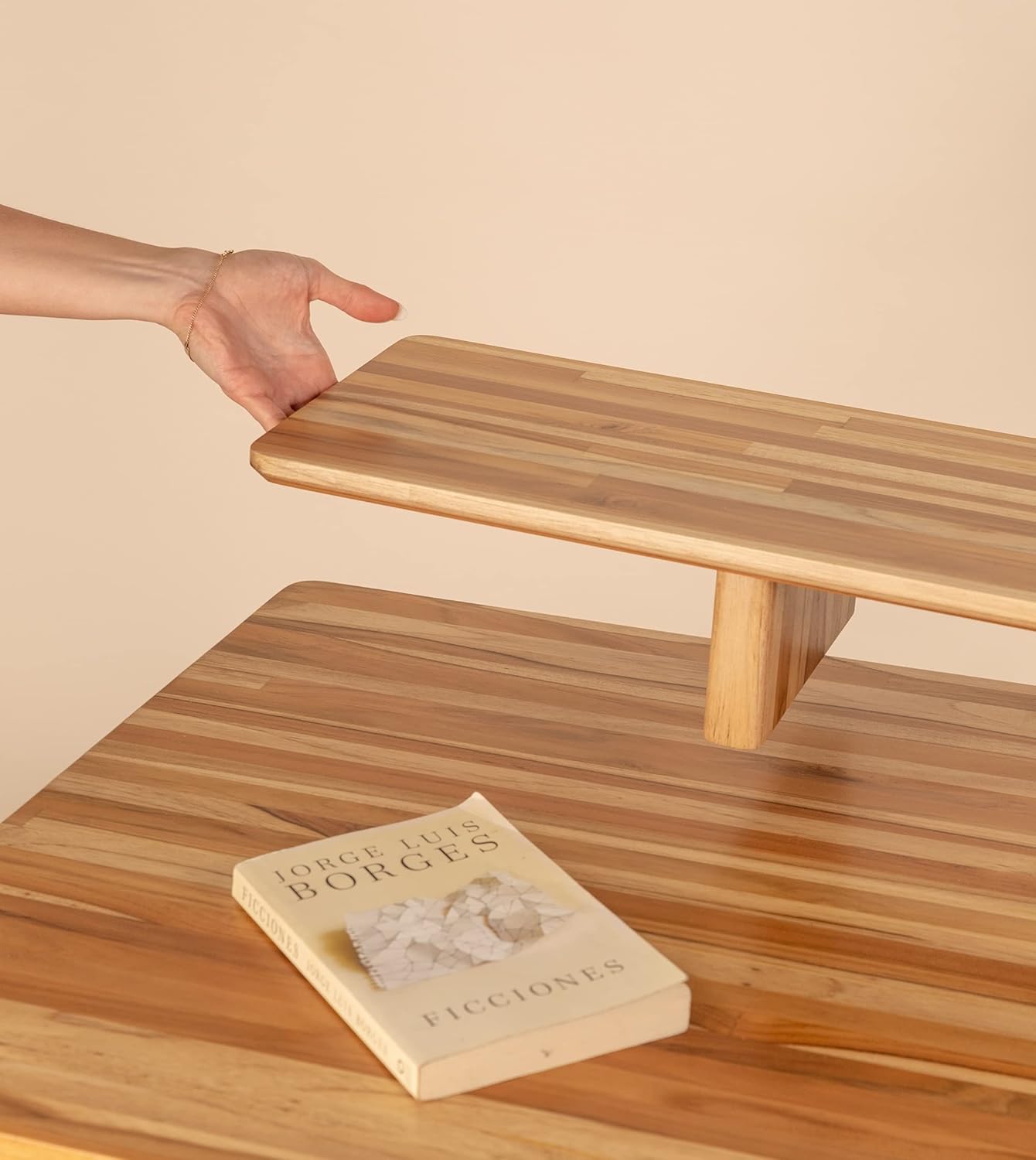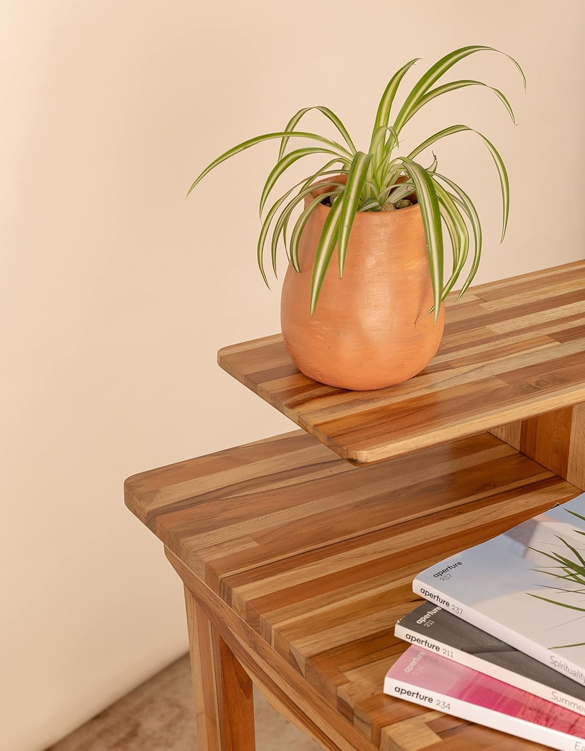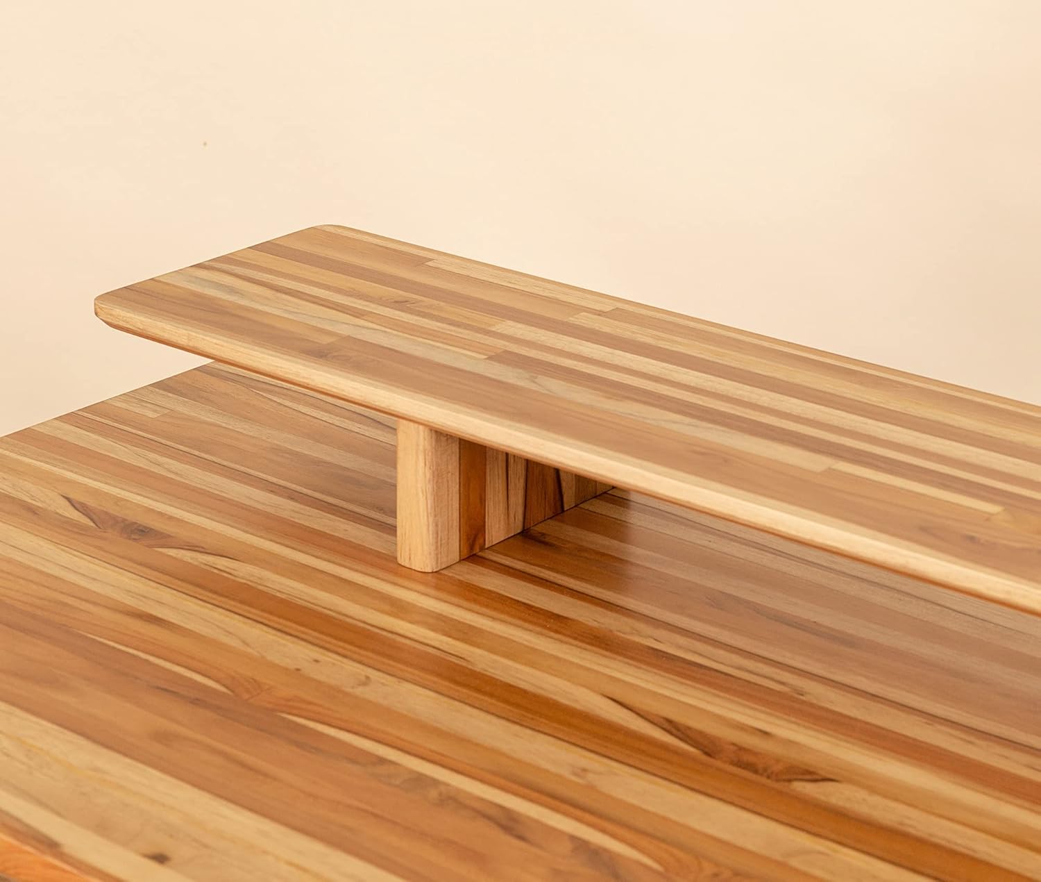 Ebb & Flow Large 61 Inch Wood Work Desk with Shelf for TV Computer Screen & Laptop – Handcrafted Natural Solid Wood Teak Desk Organizer Computer Table for Office Living Room