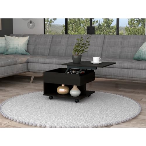 Lift Top Coffee Table with Hidden Storage Compartment Panel Space, Wooden Convertible Coffee Table for Living Room, Home Office, Dining (Black)