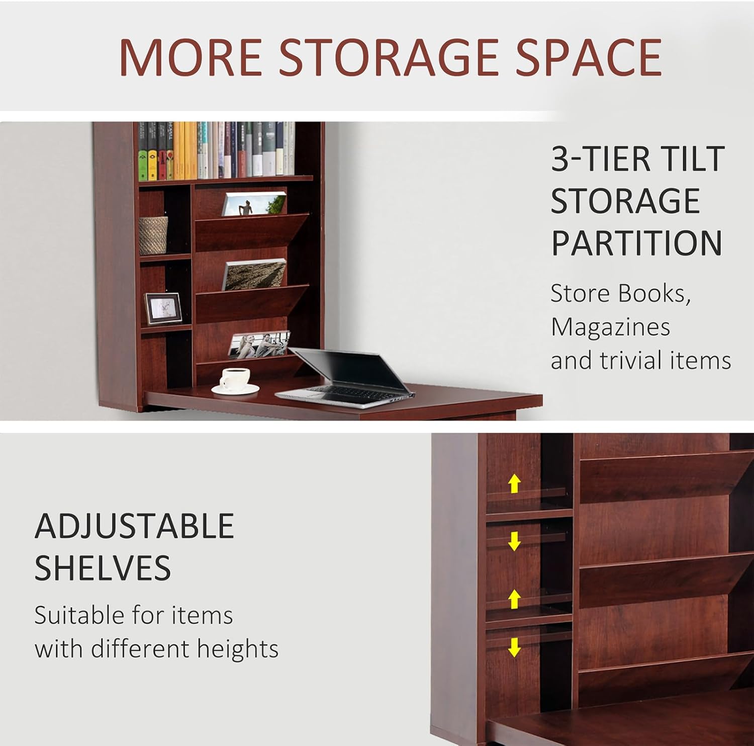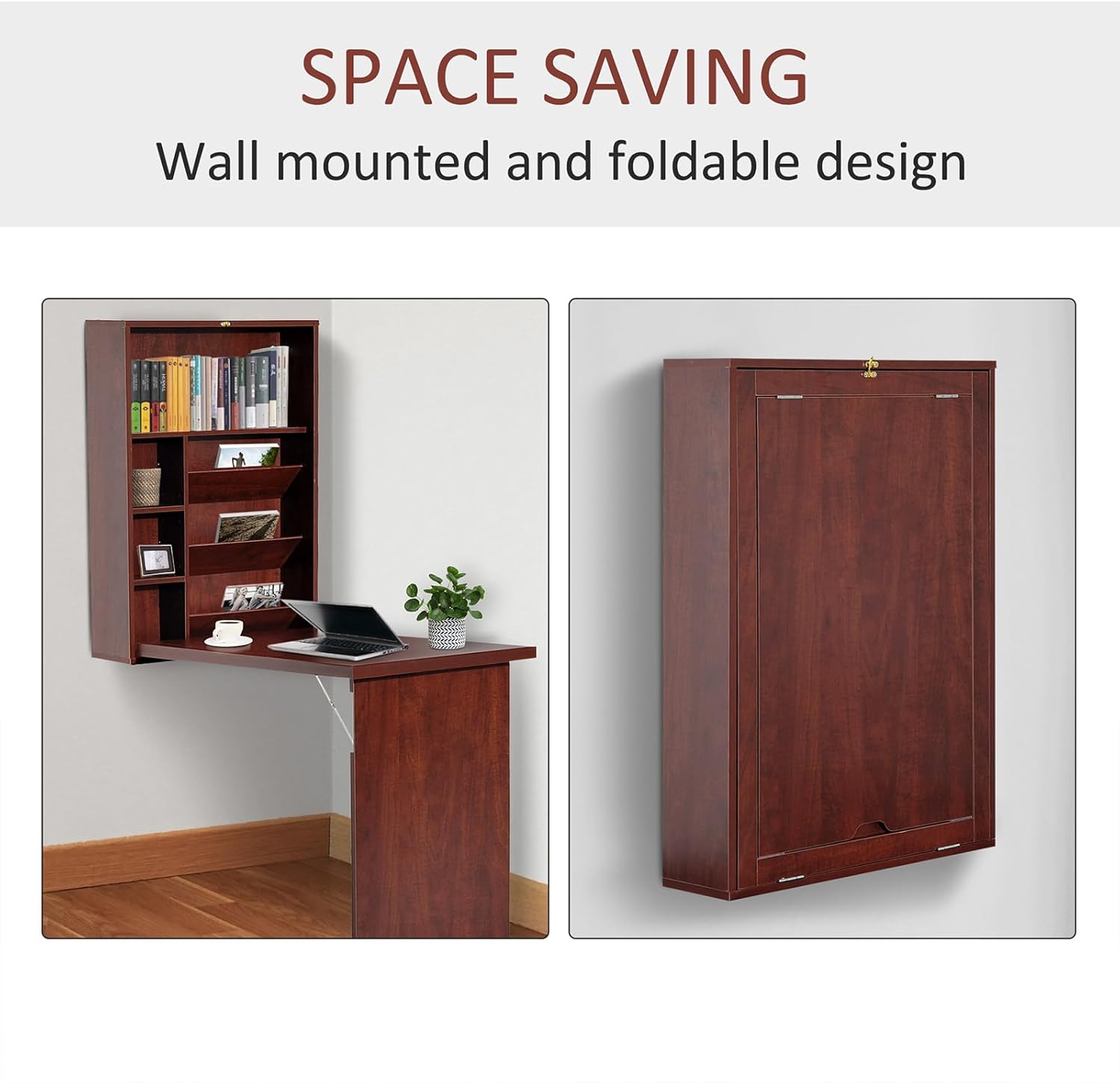 Wall Mounted Desk, Fold Out Convertible Floating, Multi-Function Murphy Desk for Home Office, Space Saving Computer/Hanging Desk, Table with Storage Area