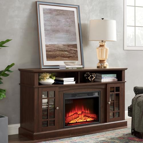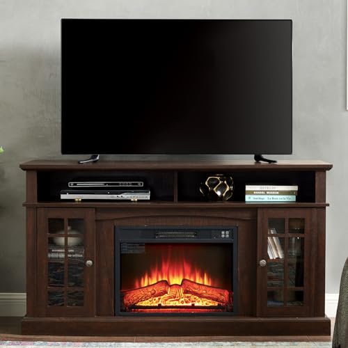 Kernohan Classic 58" TV Stands for Living Room, TV Entertainment Center with Glass Door Closed Storage Cabinet, Modern Television Stands, Media Console Table for TVs up to 65 Inches, Wash Gray