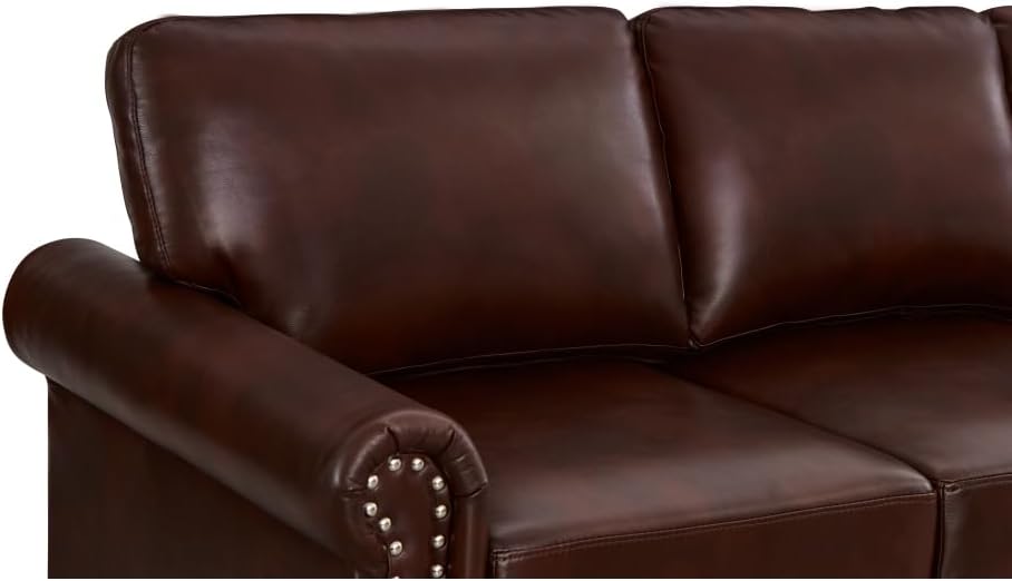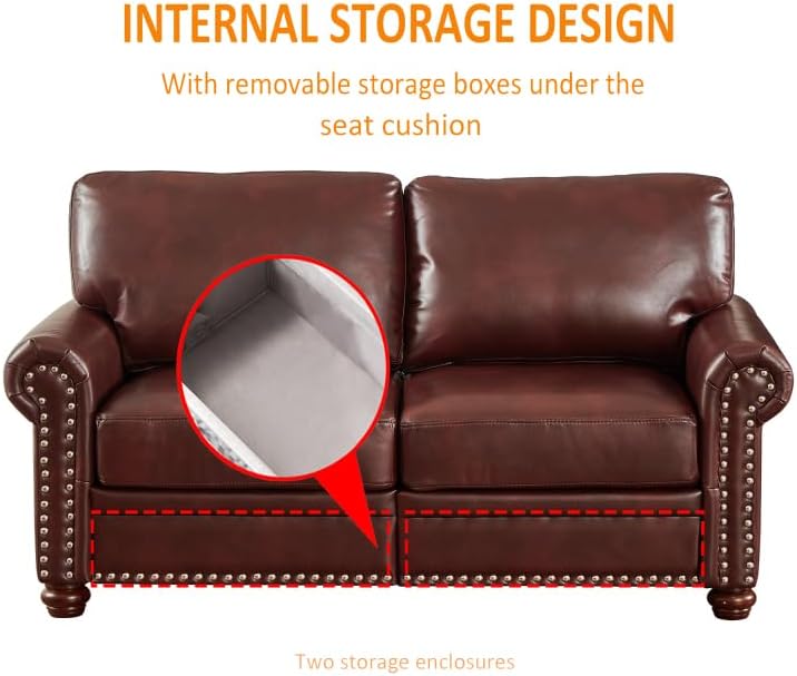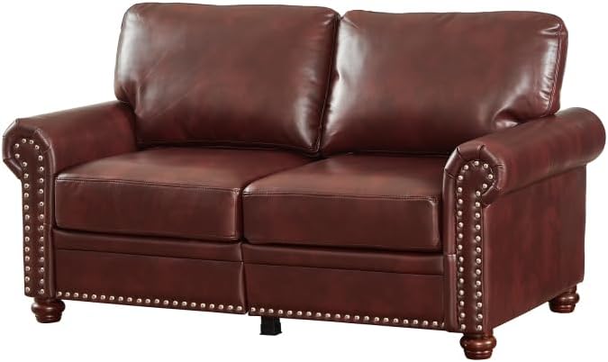 Living Room Sofa Loveseat Chair Burgundy Faux Leather Round Arm Polyester 2.2Lbs./Cu.Ft-Foam Density Solid Wood+Plywood+Metal Brown Foam+Polyester 2-Seating Capacity W1097S00086