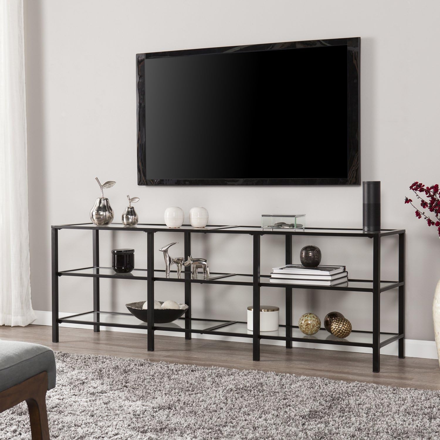 SEI Furniture Tyler Metal/Glass TV Stand – Transitional Style - Black