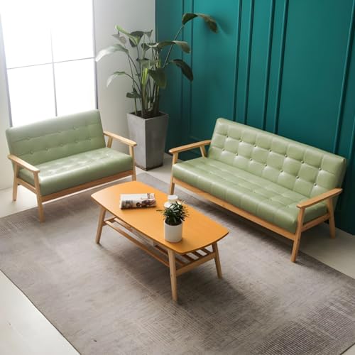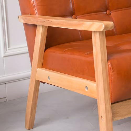 Modern Mid-Century Modern Faux Leather Loveseat Sofa, with Tufted Back in Solid Color for Living Room, Apartment and Small Space, Black Oiled Leather 55" L x 25.5" W x 27.5" H Brown Wood Leg