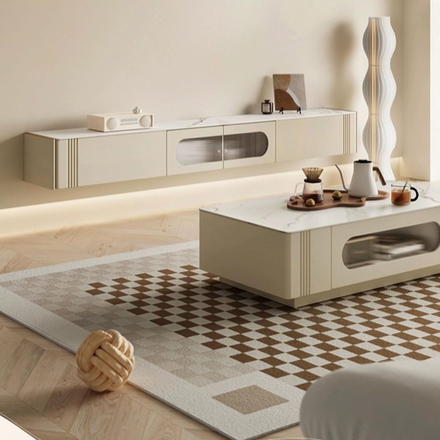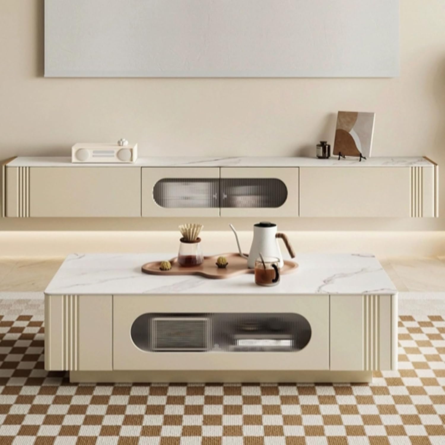 Modern TV Stand Nordic Modern Minimalist Cream Style Retractable TV Cabinet Living Room Home Creative TV Cabinet Storage Cabinets