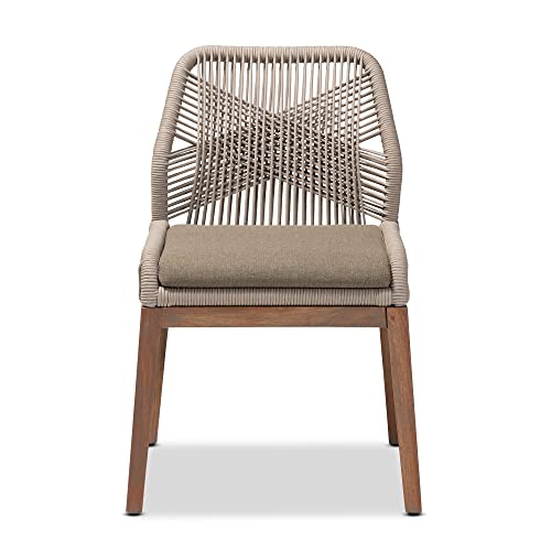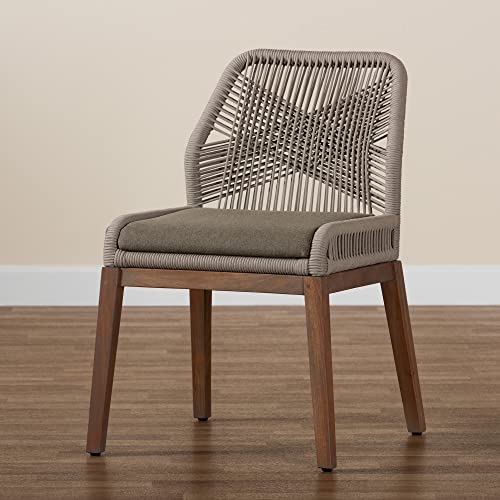 Baxton Studio Jennifer Mid-Century Transitional Grey Woven Rope Mahogany Dining Side Chair