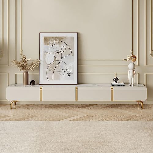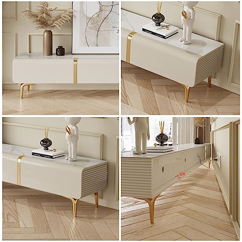 Tv Stand Tv Table Stand 70.8 Inch Slate Top TV Stand Cream Sideboard TV Stand Living Room Entertainment Center with 4 Storage Drawers Tv Stands for Living Room