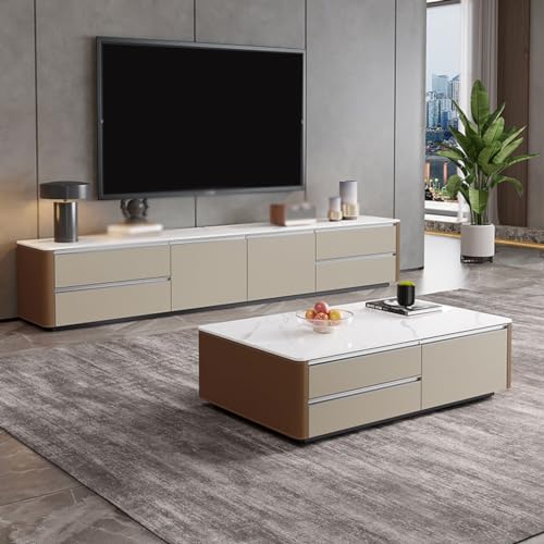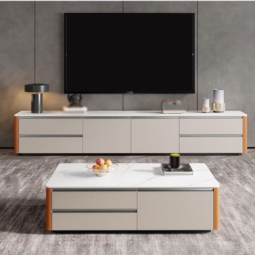 Tv Stand Tv Table Stand TV Stand Home Audio-visual Cabinet Living Room Entertainment Center Leather Storage Cabinet Cream Style Floor Cabinet Tv Stands for Living Room(200 * 40 * 45cm)