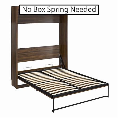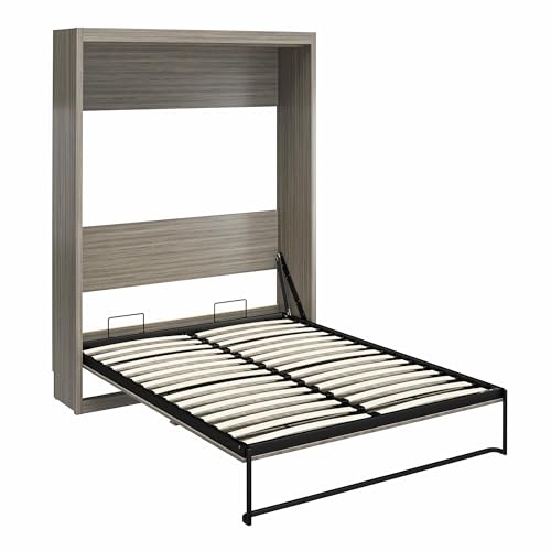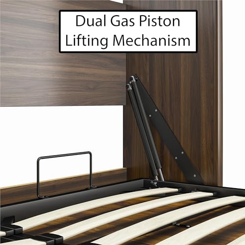 REALROOMS Halstead Queen Size Wood Murphy Bed Fold-Out Multi-Functional Storage Wall Bed Multi-Purpose Space-Saving Bedframe for Guest Room or Bedroom, Ivory Oak