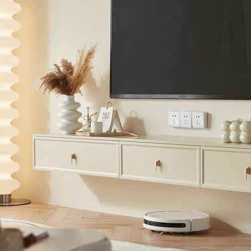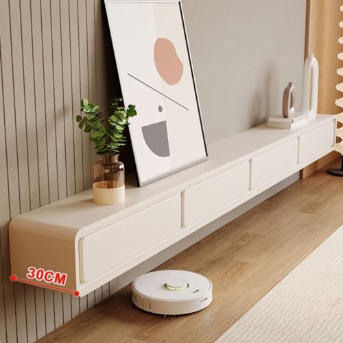 tv units for living room Floating 78.7/86.6 inch TV Cabinet with Drawers, Wall Mounted Entertainment Center with Storage and Open Shelf, Media Console Table Stand for Living Room, Bedroom, Cream White
