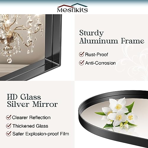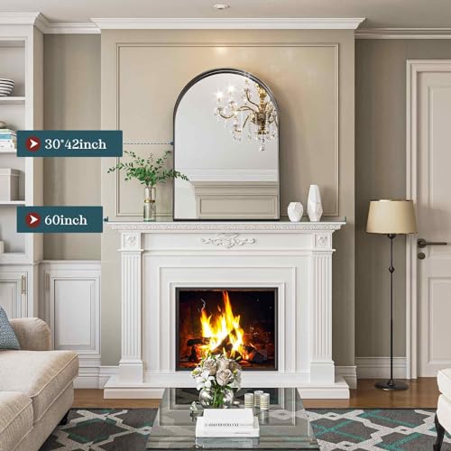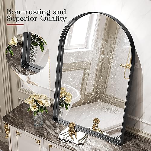 25x38 Inch Black Arched Mirror, Arched Mirror for Bathroom, Vanity Mirror Black Metal Frame, Wall-Mounting Mirrors for Living Room Bedroom Dress Room Fireplace Decor