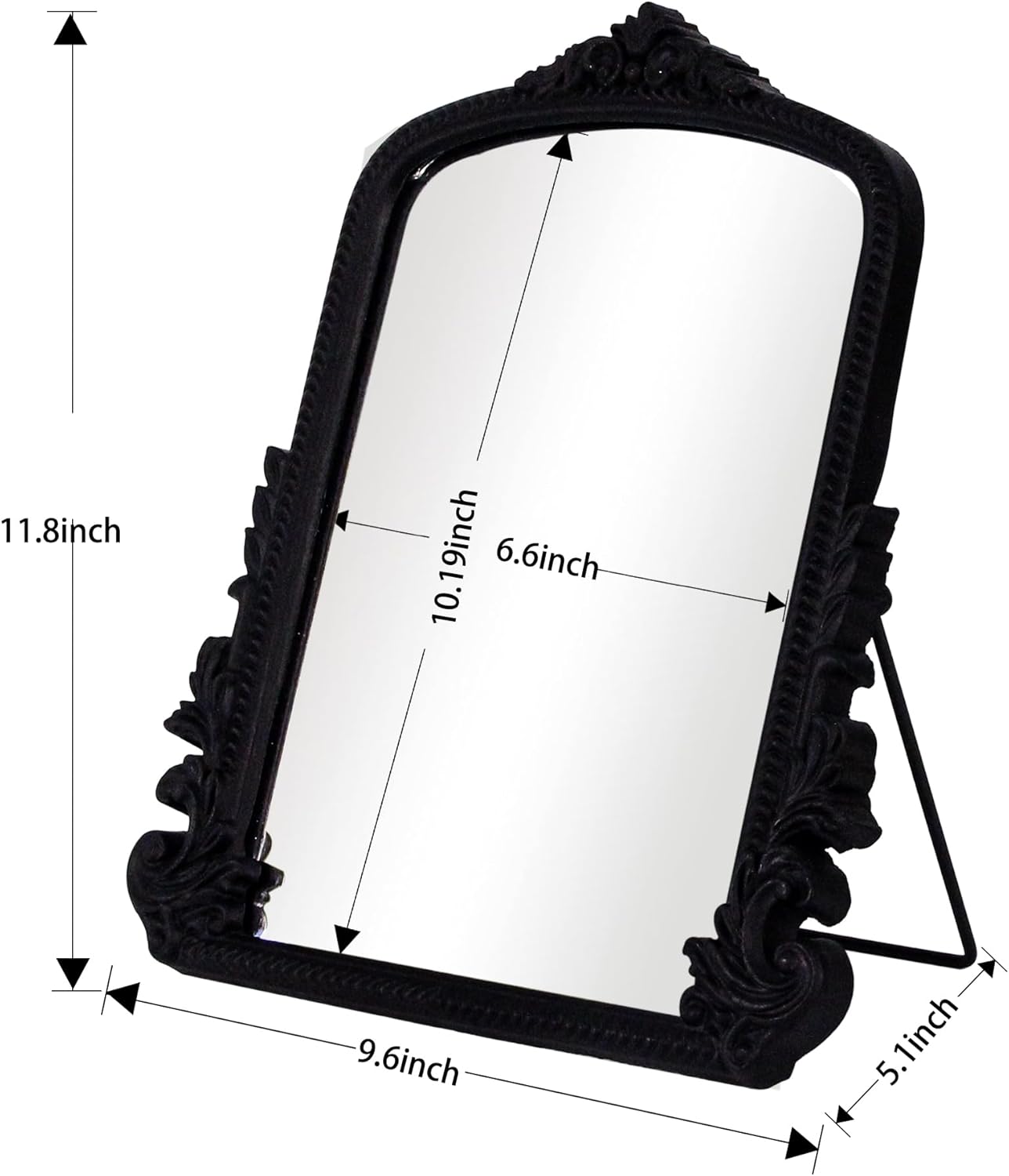 Black Arched Vanity mirror with Wood Frame, Vintage Makeup Table Mirror Baroque Style Arendahl Mirror for Desk Decorative Antique Mirror Aesthetic for Dresser,Bedroom,Living-Room 11.8" x 9.6"