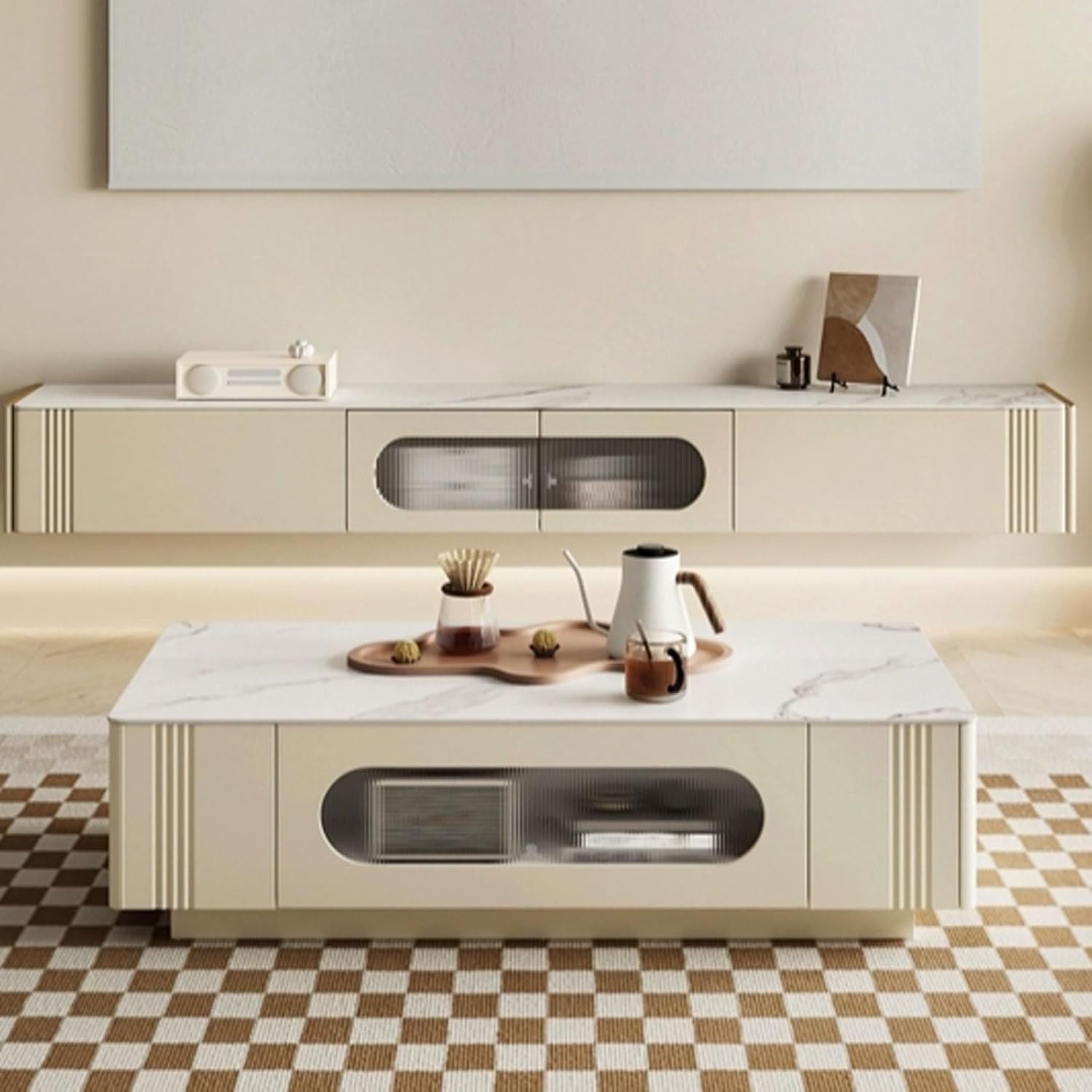 Tv Stand Tv Table Stand TV Cabinet Simple Cream Style Audio-visual Cabinet Home Storage Cabinet Living Room Entertainment Center Sideboard Tv Stands for Living Room