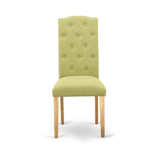 East West Furniture CEP3T10 Celina Parson Kitchen Chairs - Button Tufted Dahlia Linen Fabric Upholstered Dining Chairs, Set of 2, Mahogany