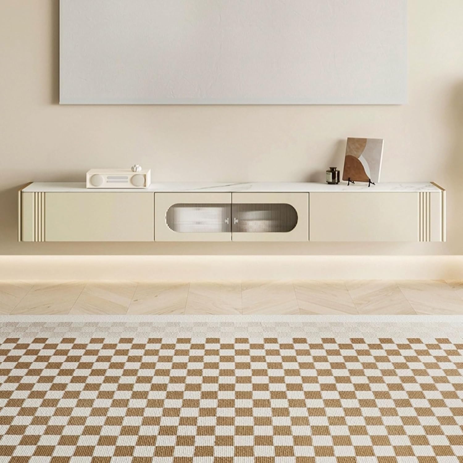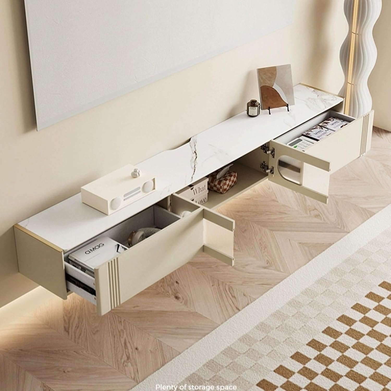 Television Stands Modern Floating TV Cabinet with Door and 2 Drawers, Narrow TV Stand Shelf Wall-Mounted Floating Stand for TVs, 78.7 Inch, Cream White Floating TV Console
