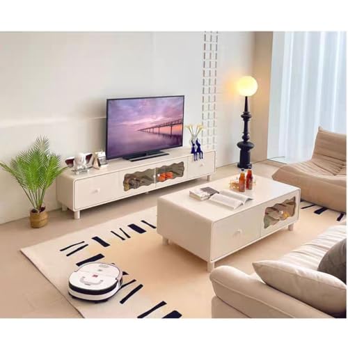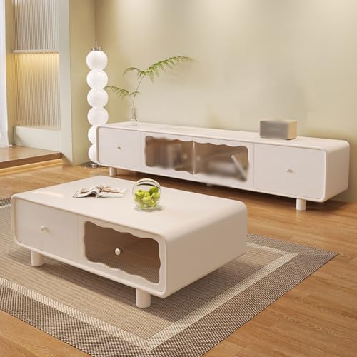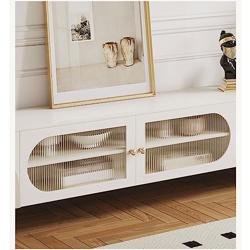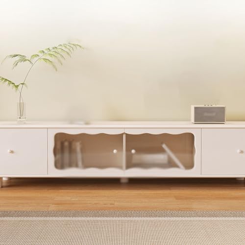 Tv Stand Tv Table Stand Modern Minimalist Cream Wind TV Cabinet Living Room Sideboard Bedroom Locker with Transparent Glass Door Tv Stands for Living Room