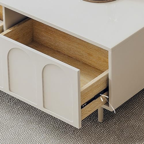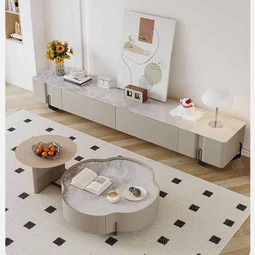 FEELIN TV Console Entertainment Center Modern Cream Style Home Living Room Entertainment Center Simple Marble Slate TV Cabinet with 2 Large Storage Drawers TV Stands for Living Room