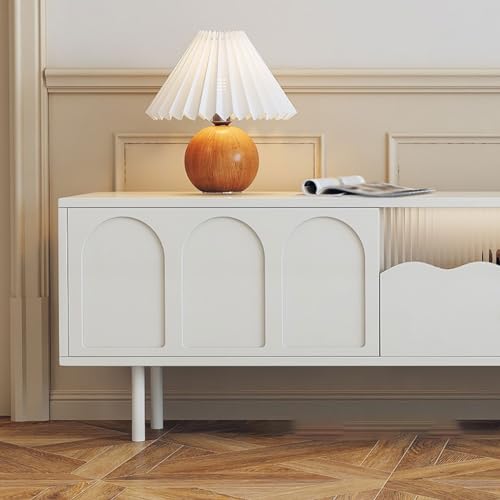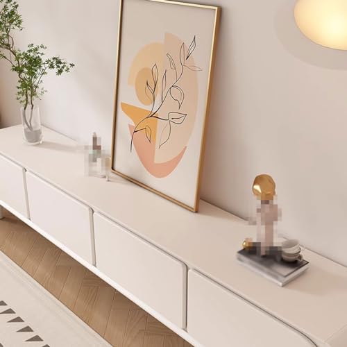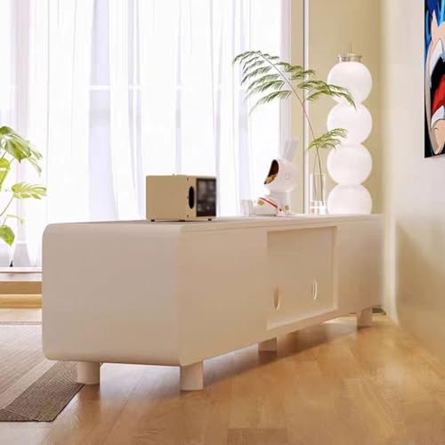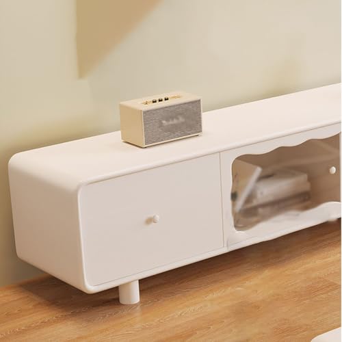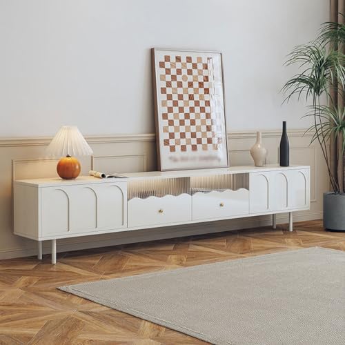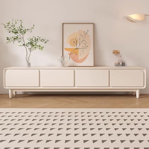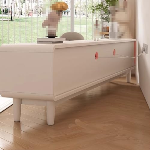 Modern TV Stand Modern Simple Solid Wood Cream Style White TV Cabinet Living Room Home Small Apartment Floor-standing TV Cabinet Storage Cabinets(220X40X45CM)