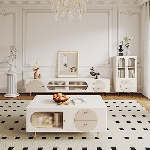 Tv Stand Tv Table Stand Creative Cream TV Cabinet Living Room Sideboard Bedroom Storage Cabinet with 4 Storage Drawers and Metal Stand Tv Stands for Living Room