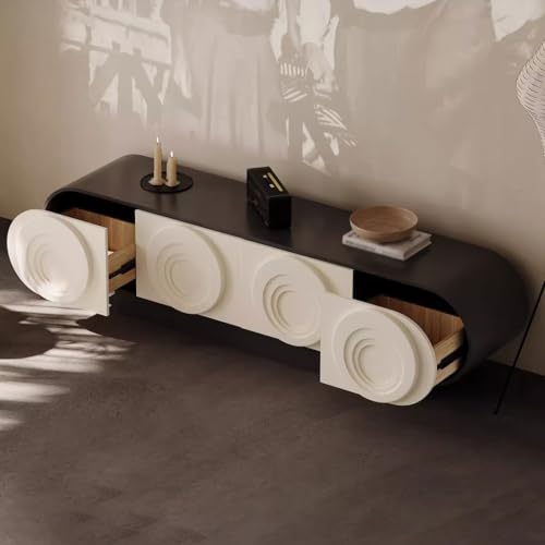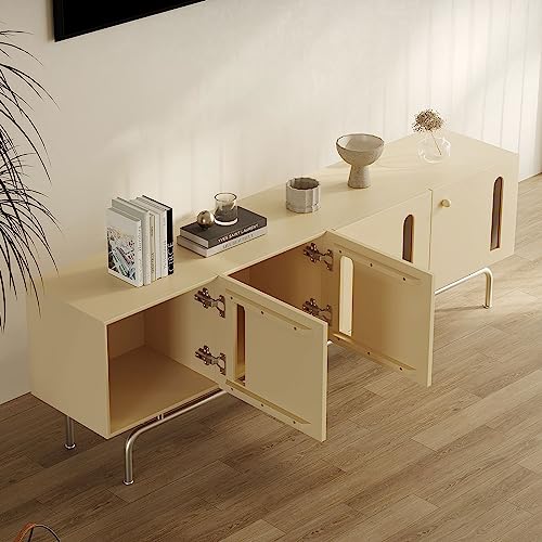 LUNIZ Modern TV Stand Modern simple TV cabinet floor-standing solid wood cream style Italian simple living room home retro living room storage TV cabinet Storage Cabinets(200X42.5X50CM)