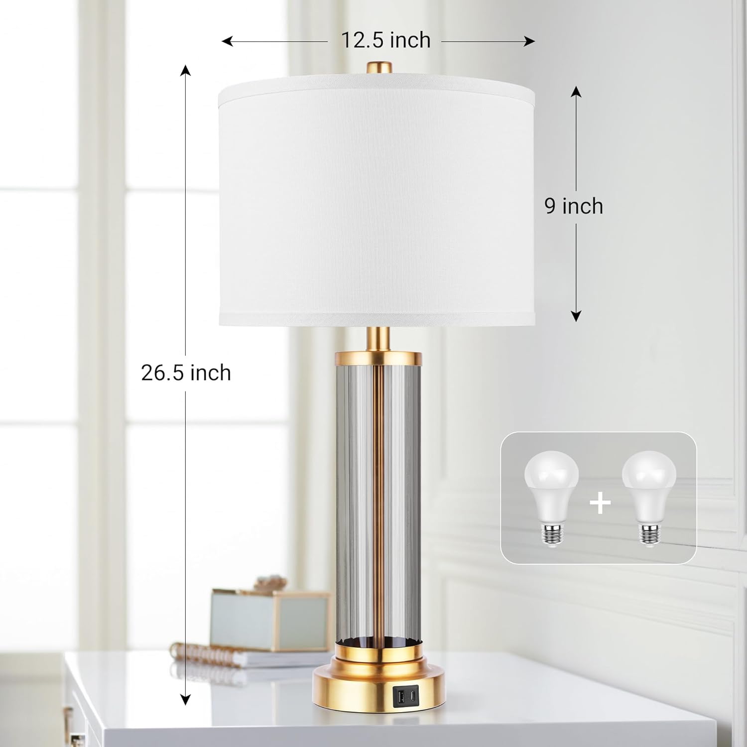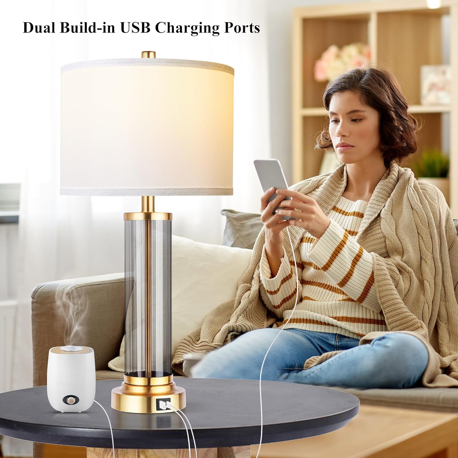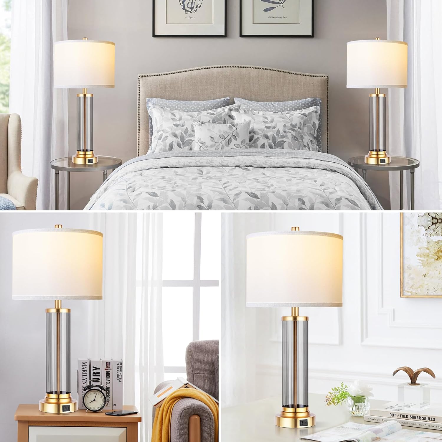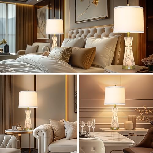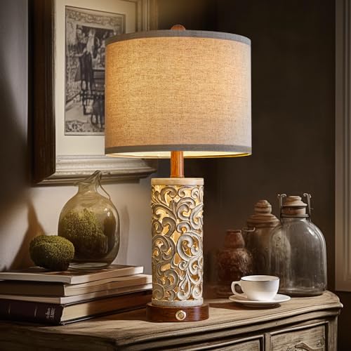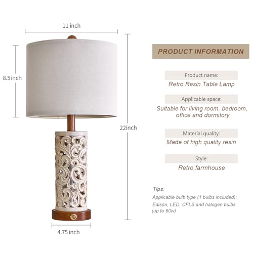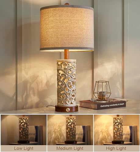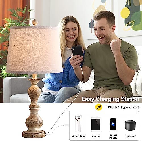OYEARS 3-Way Dimmable 22'' USB A+C Touch Control Table Lamp Set of 2 with Nightlight for Living Room Bedroom Farmhouse Bedside Nightstand Lamps (Bulb Included)