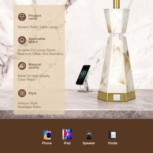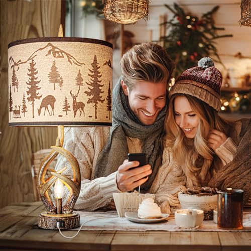 Farmhouse Rustic Table Lamps for Bedroom Set of 2, Vintage Lantern Lamp with Dual USB Charging Ports,25" Retro Antique Bedside Nightstand Desk Lamp for Living Room End Table Entryway, 4 Bulb Included