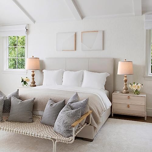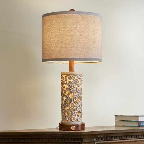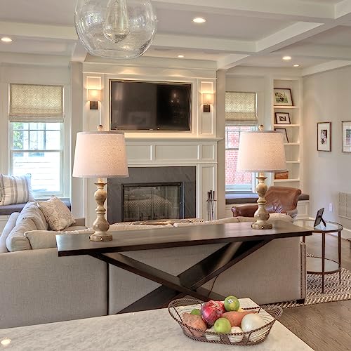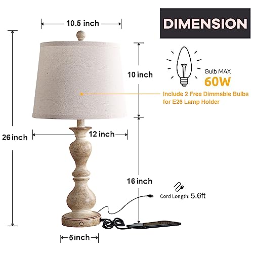 28.5" Rustic Table Lamps Set of 2 With Night Light Bedside Lamp With USB ,White Washed Finish Room Lamps With White Linen Cut Corner Shade nightstand lamp for Living Room bedrooms office Hotel