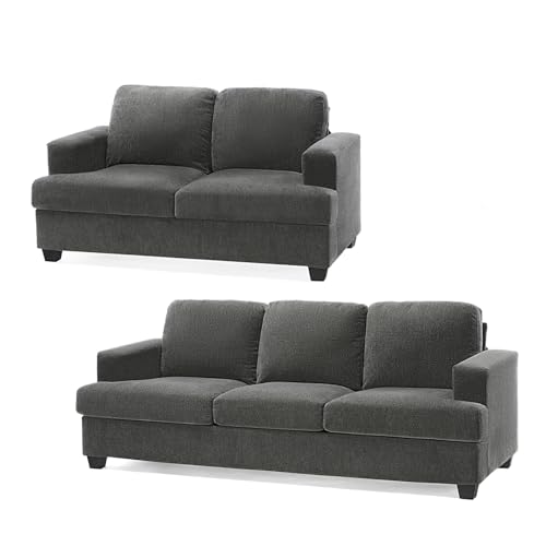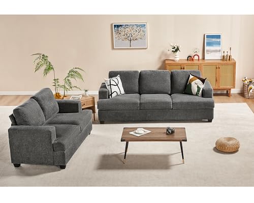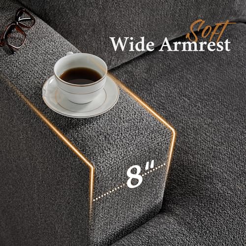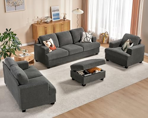 papababe Sofa, 3 Piece Set Modern Couches with Storage Ottomans, Extra Deep Seated Oversized Sofa, Comfy Couches for Living Room, Bedroom and Office (Bouclé, Grey)