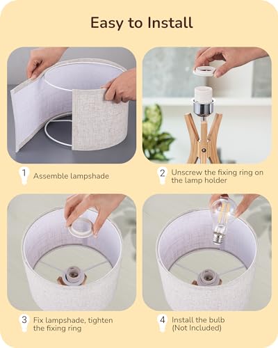 EDISHINE Tripod Table Lamp, 17.5" Modern Bedside Lamp with Natural Wood-colored Lamp Legs & Beige Linen Lampshade, Boho Nightstand Lamp for Bedroom, Living Room, Reading Room, E26 Base