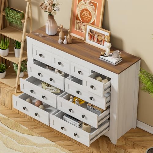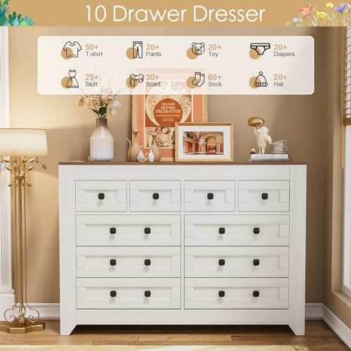 PAKASEPT Farmhouse White Dresser for Bedroom, 54" Wide Chest of Drawers for Bedroom with 3 Wooden Drawers and Sliding Barn Doors, Wood Dressers Storage TV Stand for Bedroom, Living Room, Kitchen