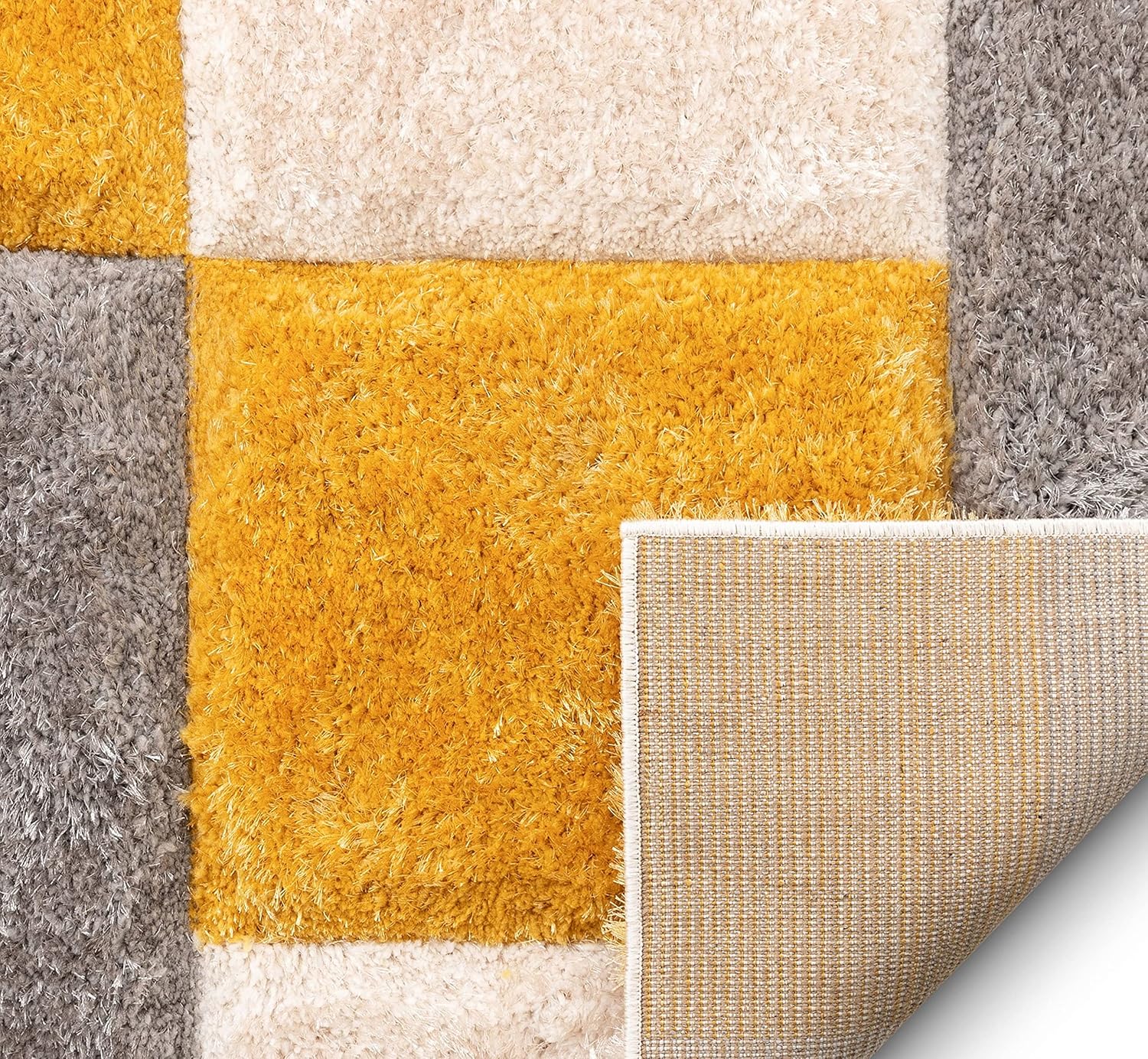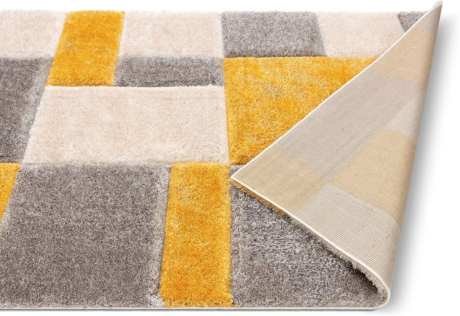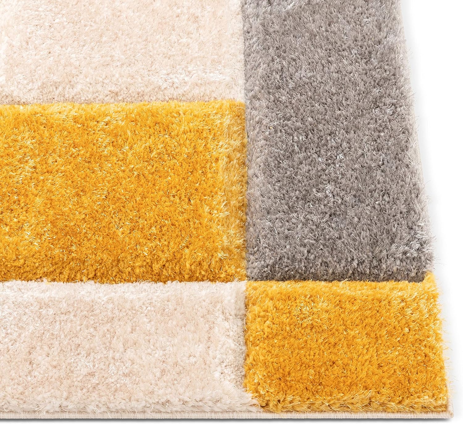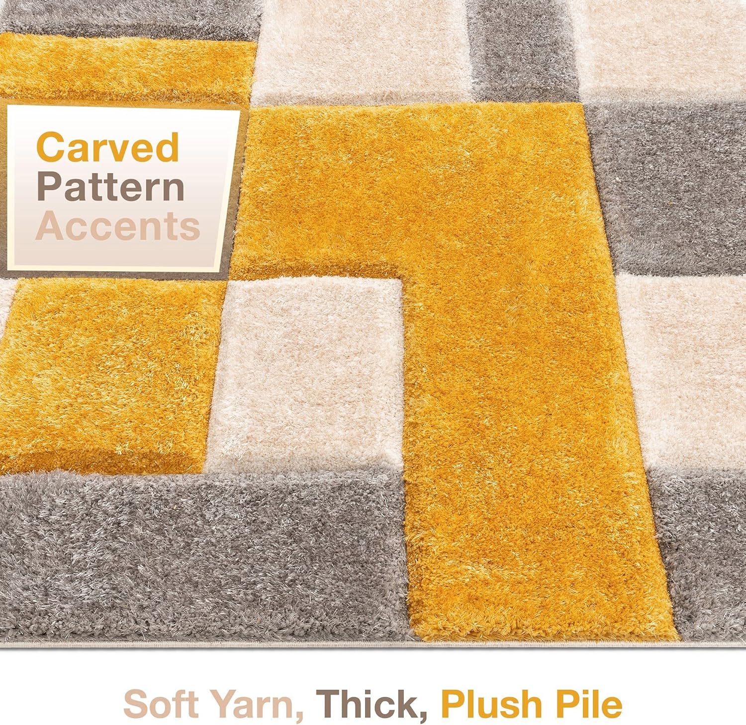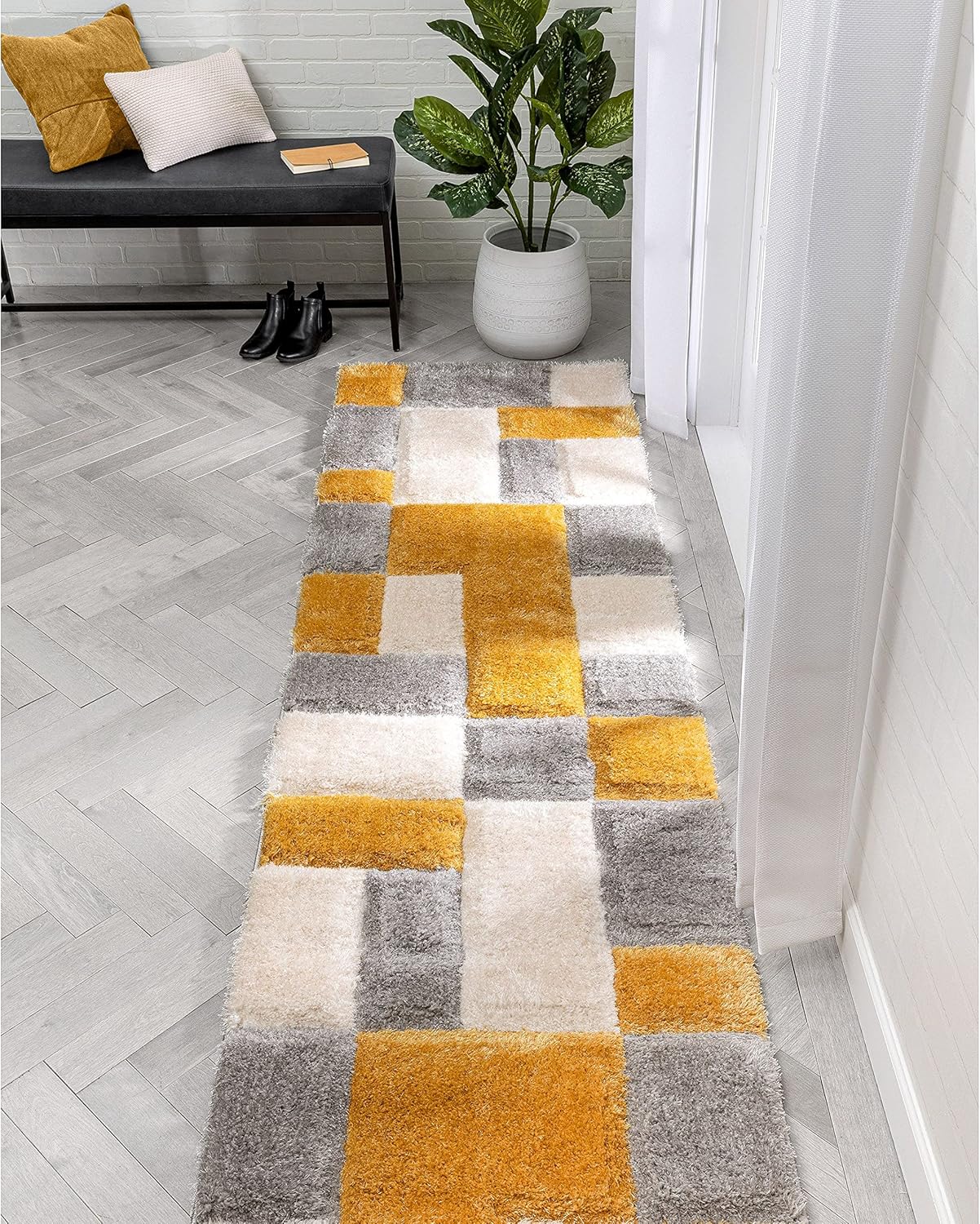 Well Woven San Francisco Escondido Yellow Modern Geometric 3D Textured Thick and Soft Shag 2'7" x 9'10" Runner Rug