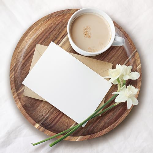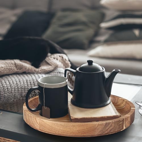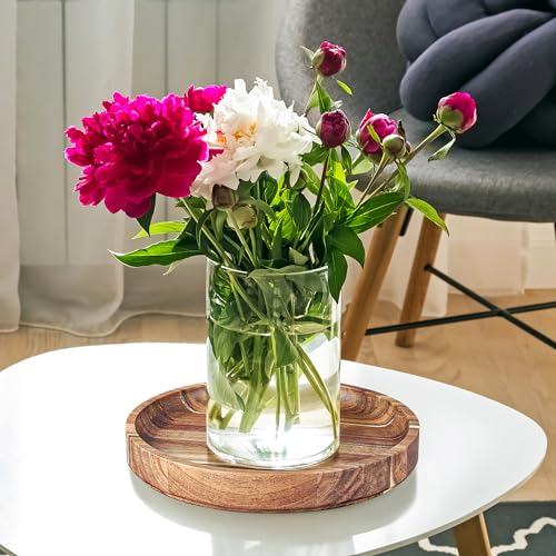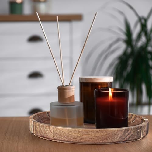 Rubber Wood Round Tray, Decorative Coffee Table Tray, Candle Holder Plate, Kitchen Island Table Centerpiece, Rustic Home Decor Platter for Living Room