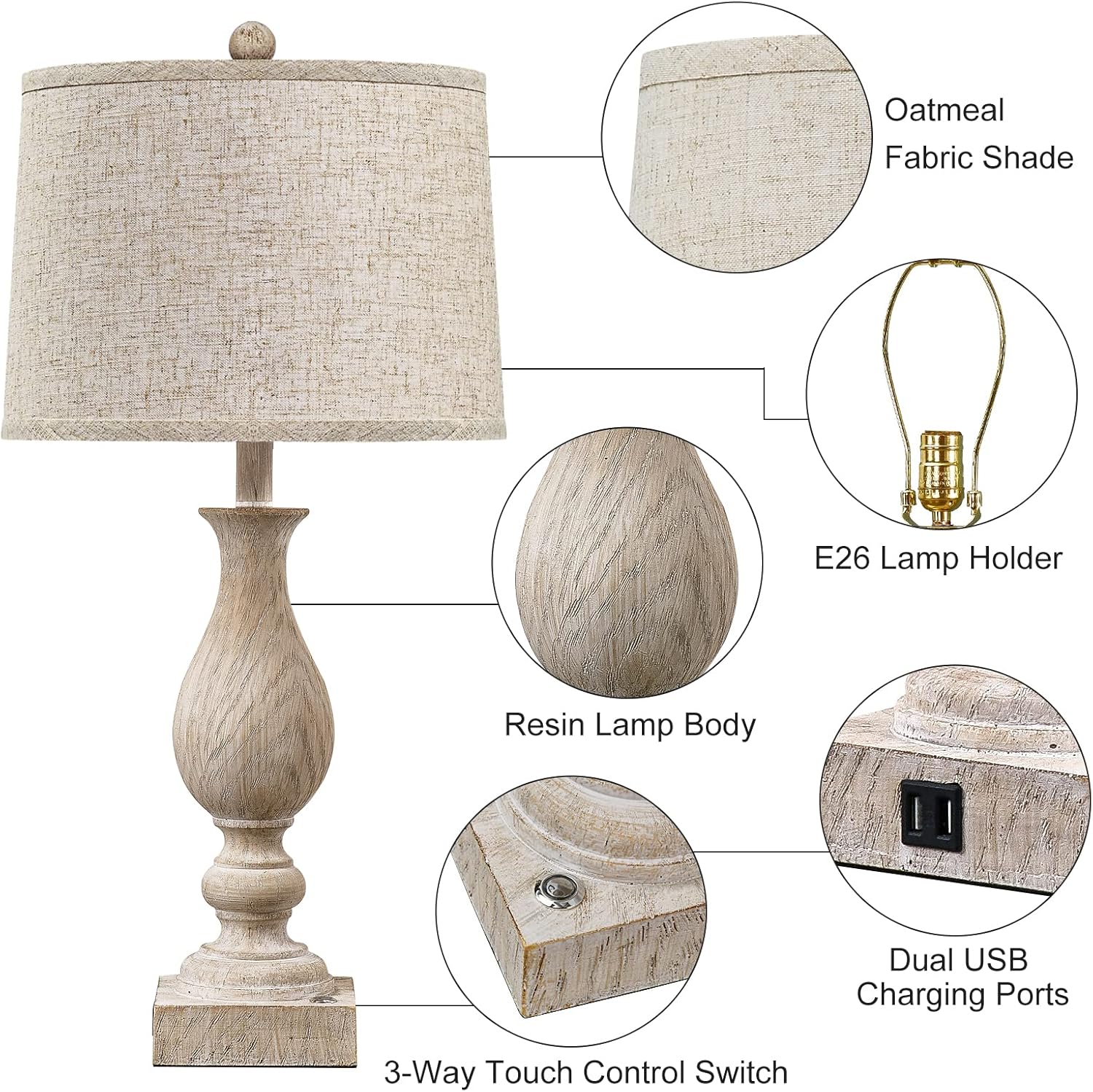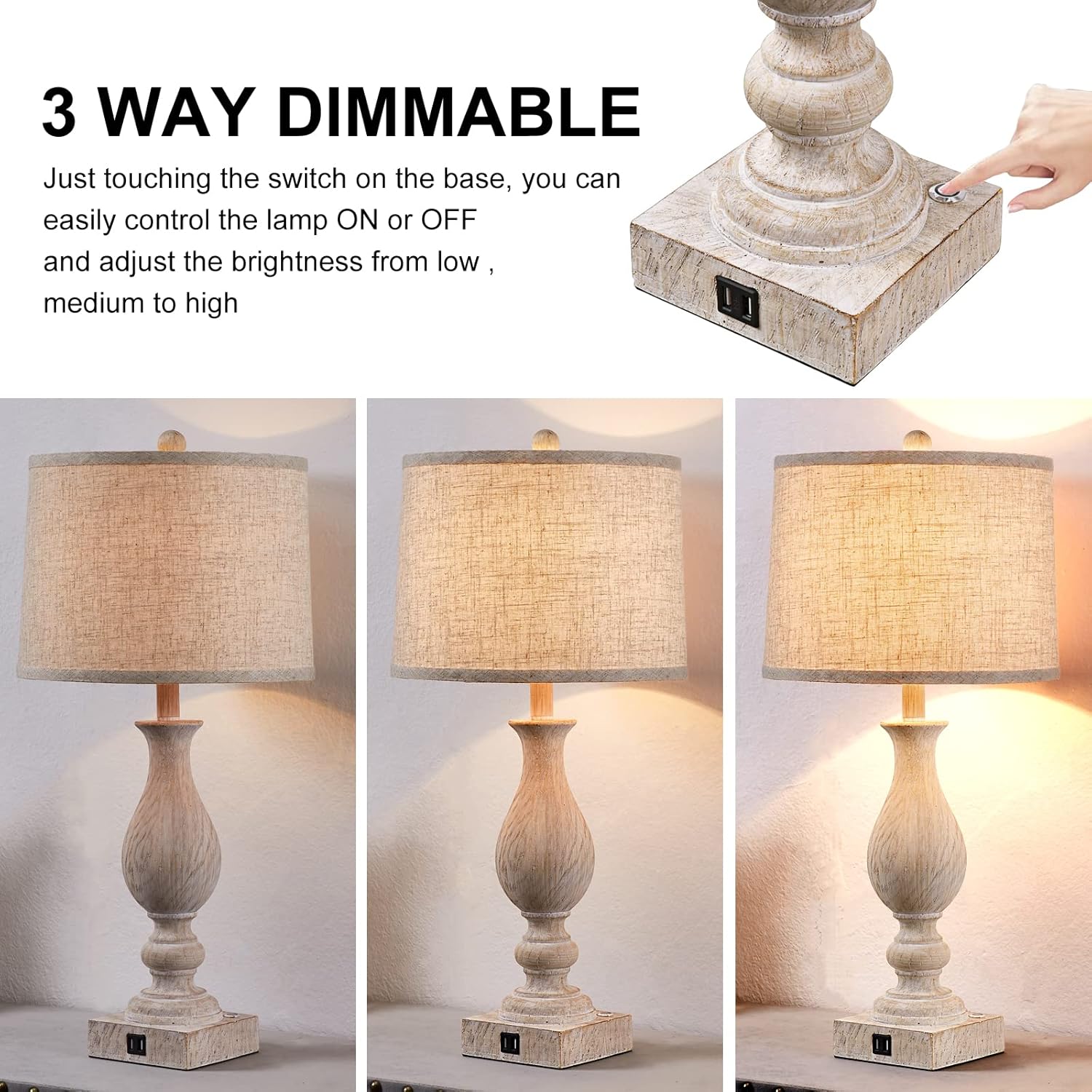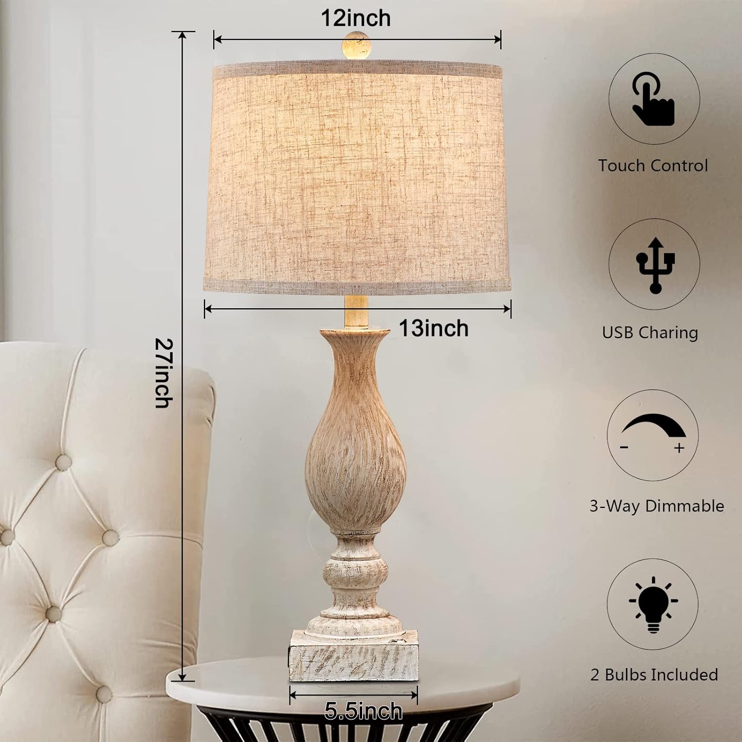Touch Control Farmhouse Table Lamps Set of 2 for Living Room 3-Way Dimmable 27'' Rustic Bedside Lamps with 2 USB Charging Ports for Bedroom Vintage Traditional Nightstand Lamps (2 Bulbs Included)