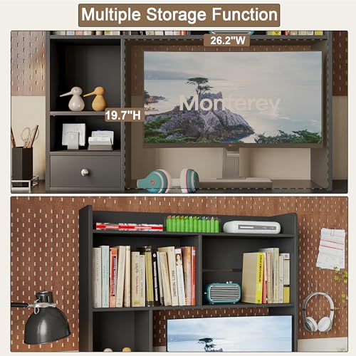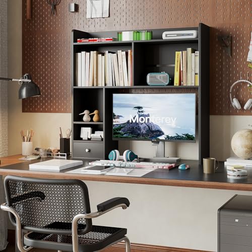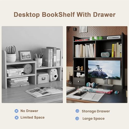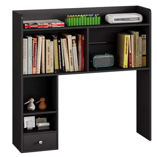ChooChoo Desktop Bookshelf, 36.4" Tall Countertop Desk Hutch with 5 Shelves and 1 Drawer for Computer Desk, Desk Shelf Organizer for Dorm Office Home,White
