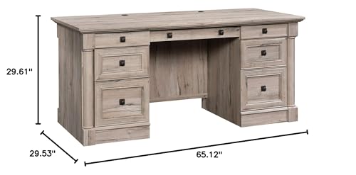 Sauder Palladia Executive Desk, L: 65.12" x W: 29.53" x H: 29.61", Split Oak Finish & Palladia Computer Desk, L: 53.15" x W: 23.47" x H: 30.04", Split Oak Finish
