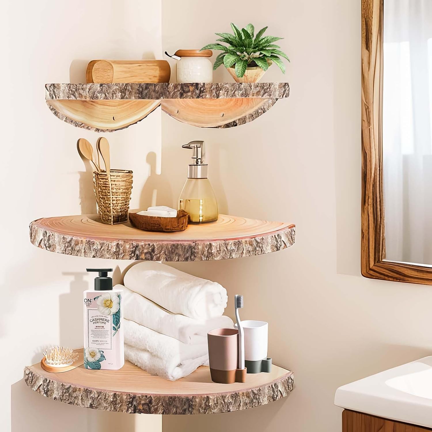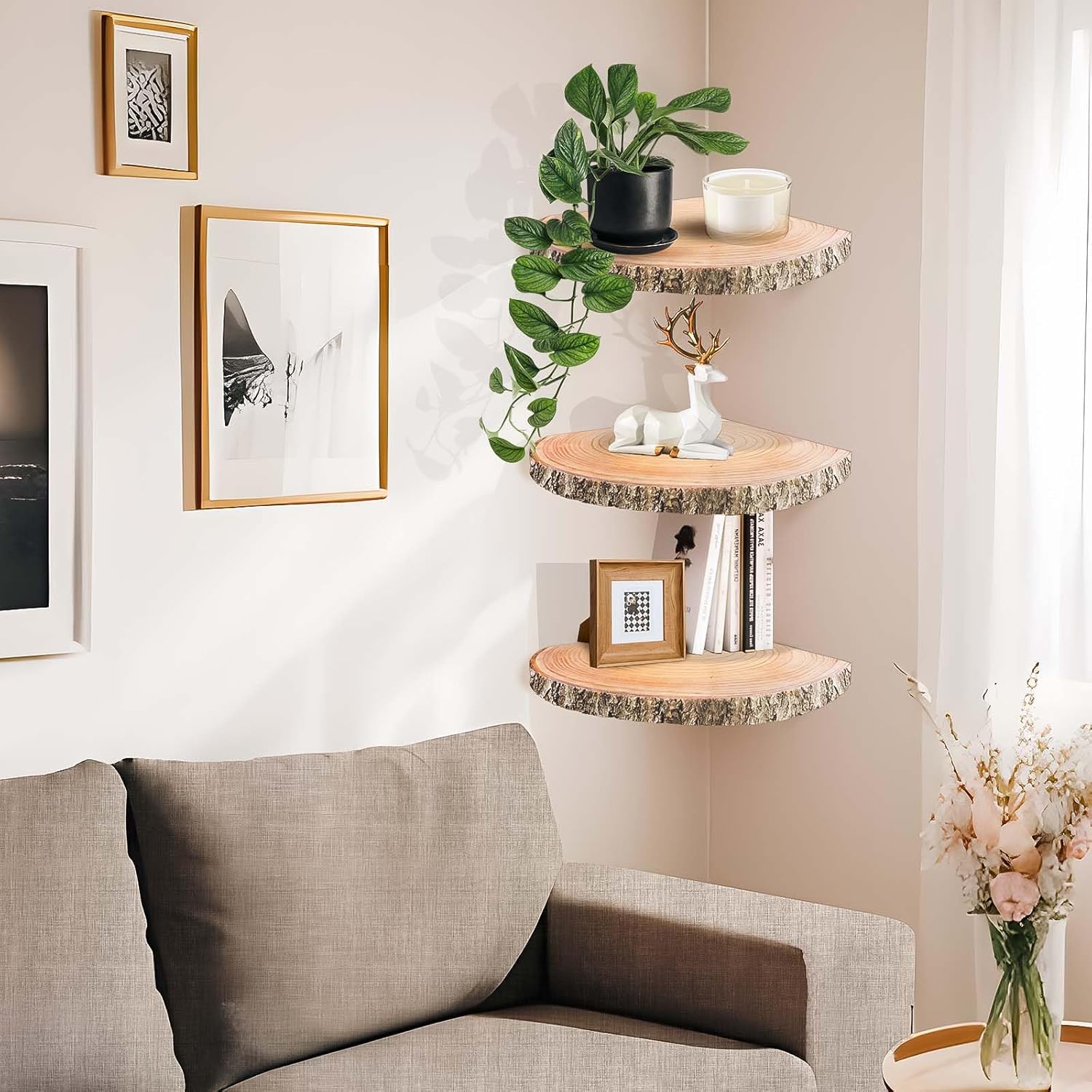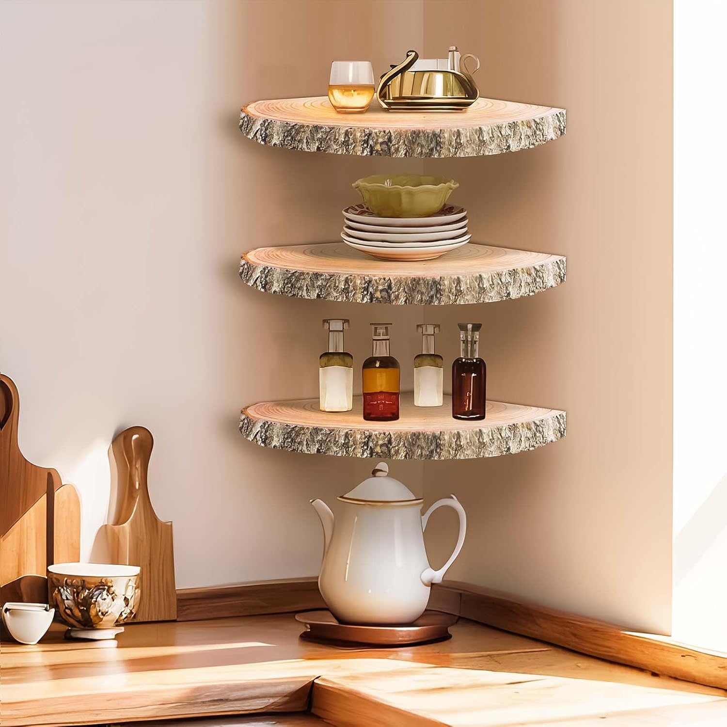 Corner Shelf Wall Mounted Wood Corner Floating Shelves 3Pcs Wall Shelf Rustic Small Corner Shelf Live EDG Floating Shelvesfor Bedroom/Bathroom/Living Room Decor/Kitchen/Office