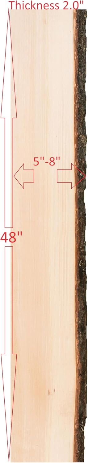 Live Edge Pine Shelf, 4 Feet Long, Varying 5-8 Inches Wide, Ready to Finish, Brown