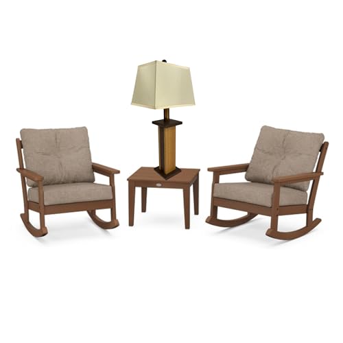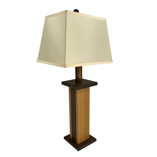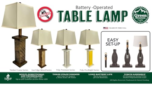 2 Pack 26" Tall Coastal Weatherproof Battery-Operated Table Lamp Poly Lumber Cordless Indoor/Outdoor 3 Stage Dimmer + Auto-Off Timer (Brown Core with Teak Panels)