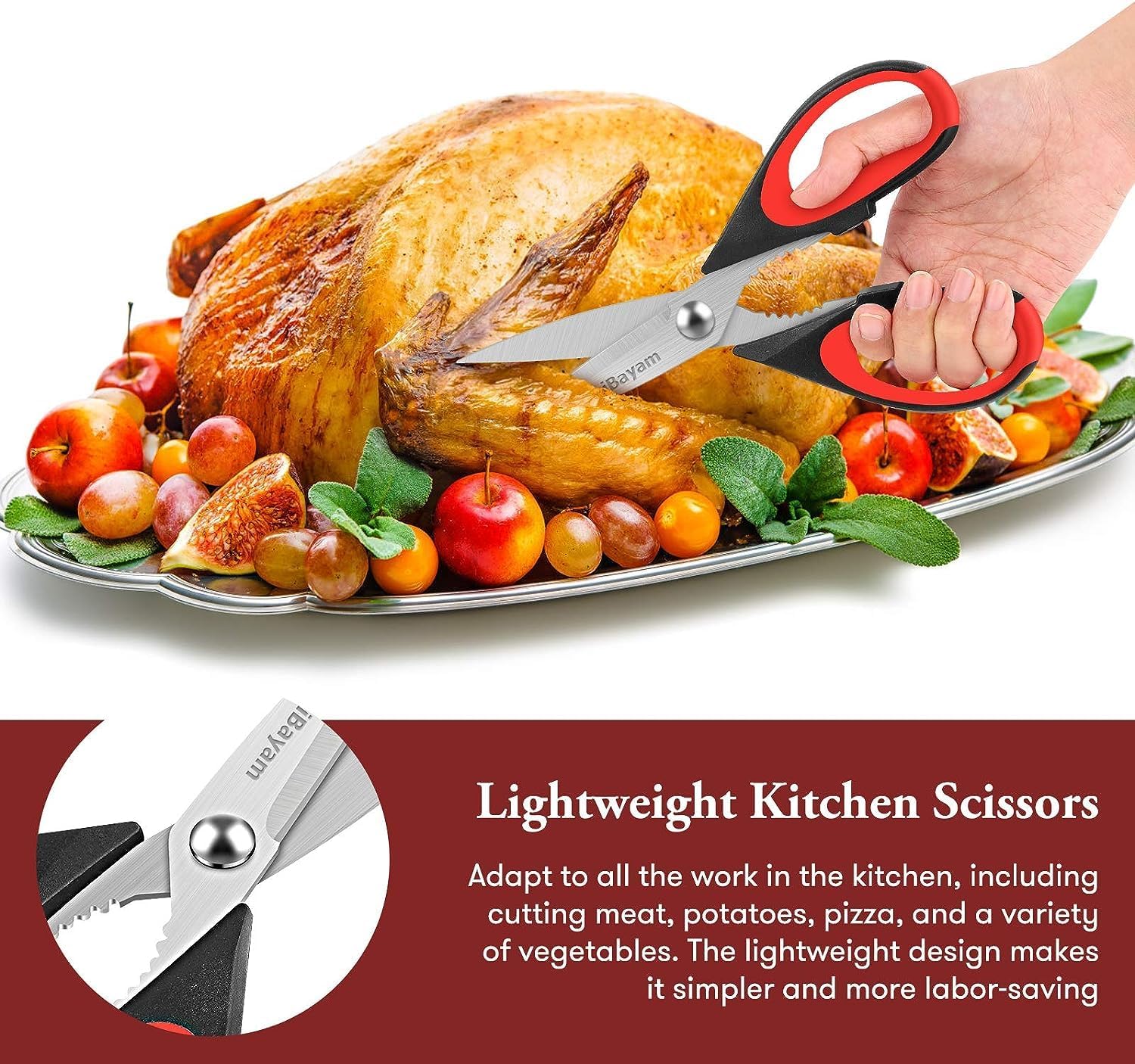 iBayam 3-Pack Kitchen Scissors All Purpose Kitchen Shears Heavy Duty Scissors with Protective Sheath for Food, 8.5" Comfort Grip Stainless Steel Dishwasher Safe Cooking Scissors, Kitchen Utensils